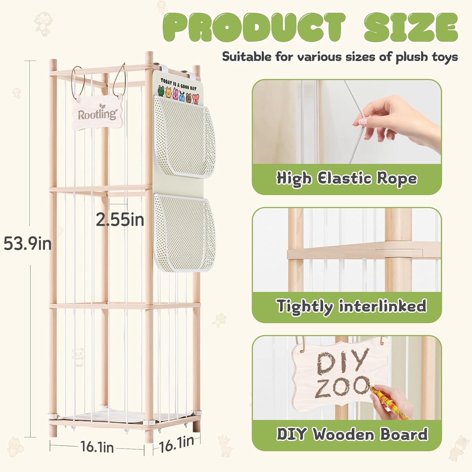 - 【Efficient Organization & Stoage】:The Rootling Stuffed Animal Storage is perfect for helping your child keep their room tidy. It has plenty of room for all the stuffed toys and the unique cage design makes it easy to reach and put the toys away. Not only does it keep the room organized, but it also fosters a sense of responsibility and teaches your child organizing skills!