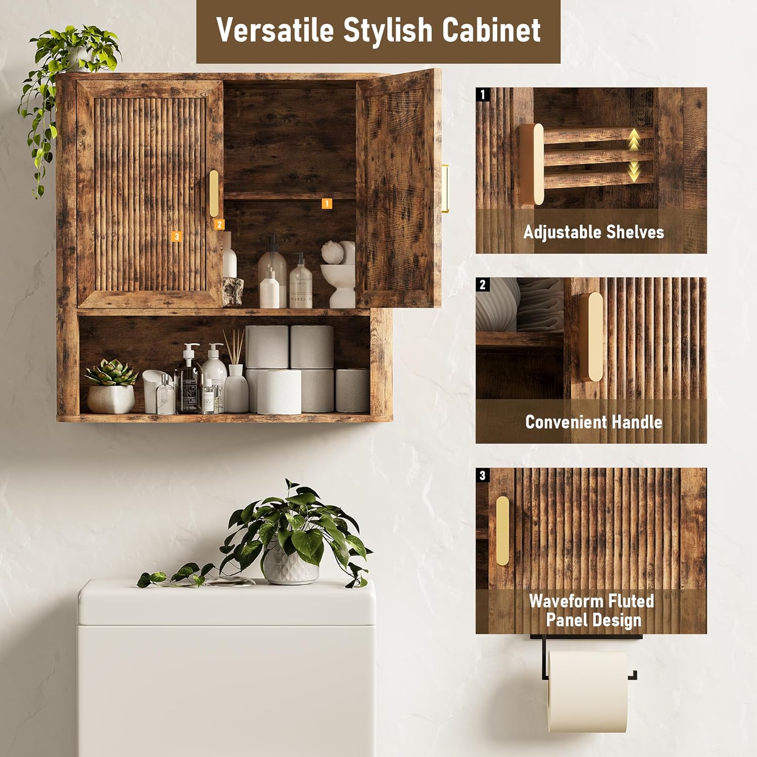 Bathroom Wall Cabinet, Wall-Mounted Medicine Cabinet with Adjustable Wood Shelf & Doors, Floating Bathroom Cabinet Over Toilet for Laundry Room & Kitchen & Living Room (Retro)