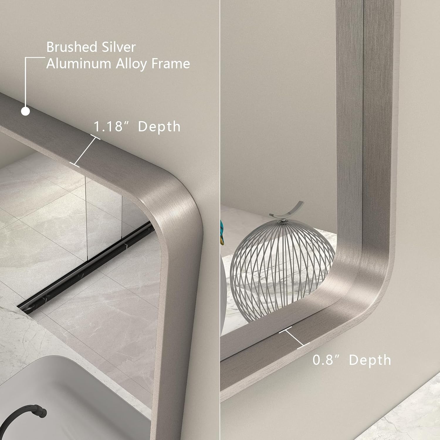 - 【Durable Brushed Silver Frame Mirror】With round corner metal frame, CHARMOR silver bathroom mirror looks elegant and feels smooth. The frame material is premium alumium alloy, which is stylish and more durable. Light weight, good corrosion resistance and wear resistance.