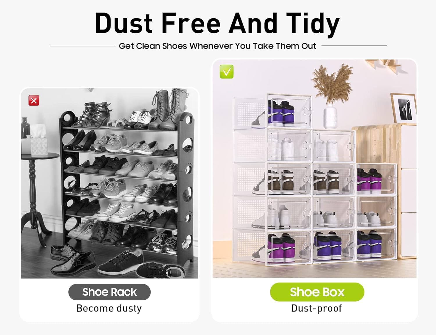 - Shoe Organizer Solutions: More dustproof than shoe racks, ventilated and breathable than shoe cabinets