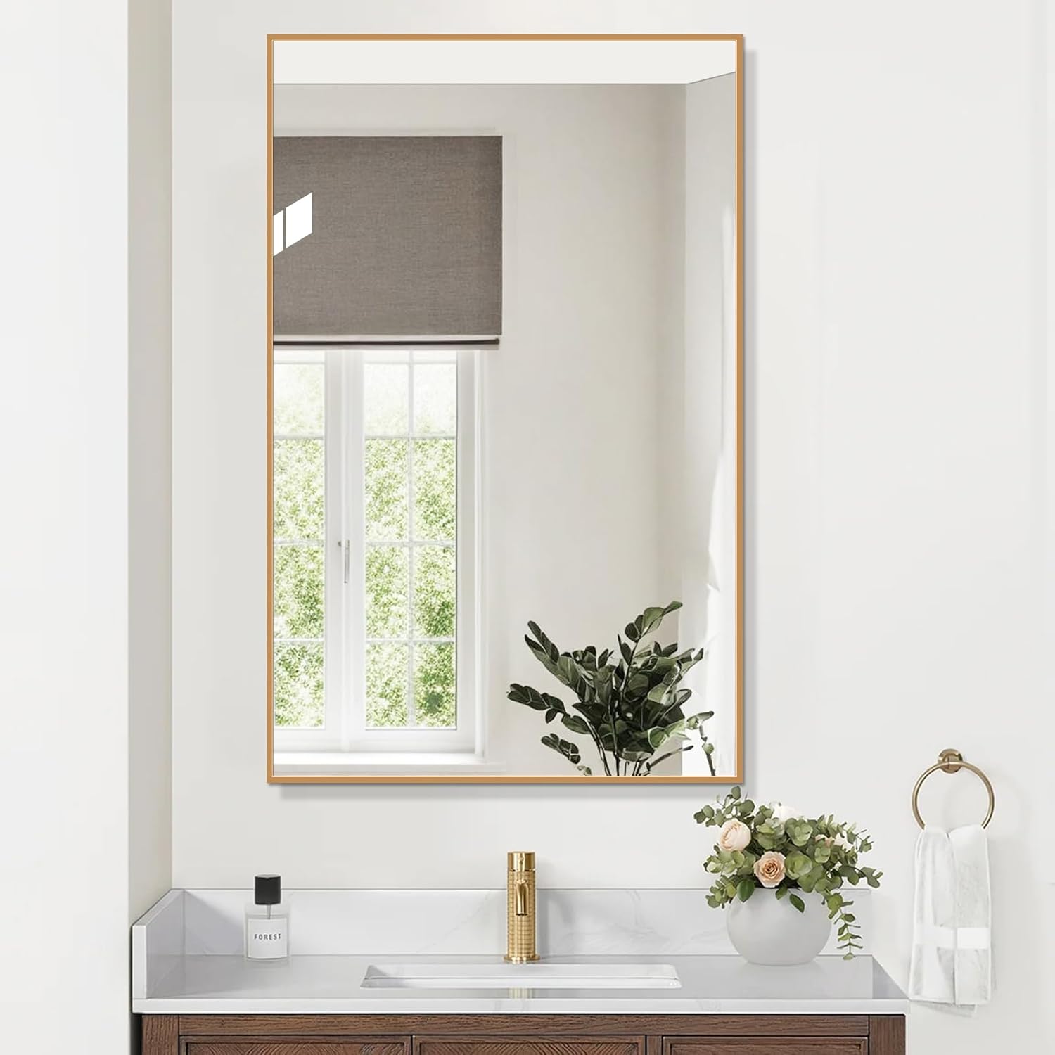 Golden Bathroom Mirror for Wall, Rectangle Mirrors with Metal Frame, Modern Vanity Wall Mirror Decor for Entryway Hangs, Bathroom Living Room Horizontal or Vertical(Golden, 30" L x 24" W)