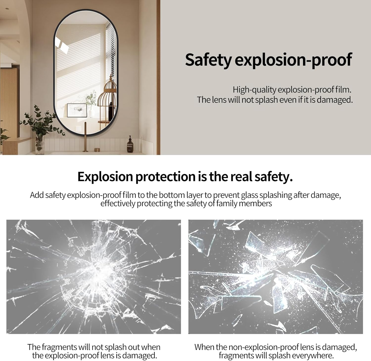 LAIYA 48x24inch Oval Wall Bathroom Mirror with Black Aluminum Frame,Wall Mounted Oval Vanity Mirrors, Explosion-Proof Glass, Waterproof Design, Easy Installation,Horizontally/Vertically