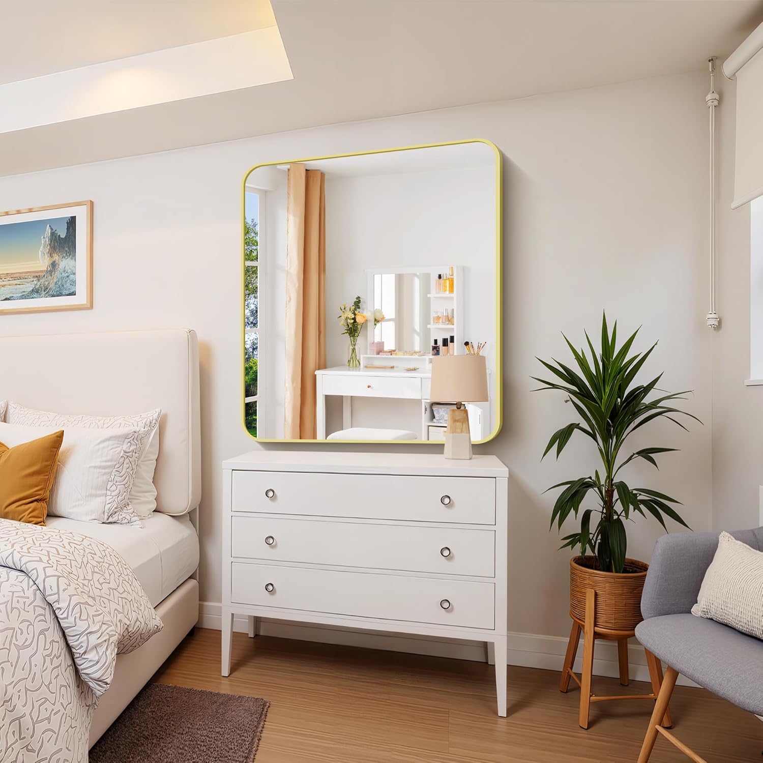 FORBATH 40x36 Inch Gold Bathroom Mirror for Over Sink, Large Rectanglar Wall Mirror with Metal Frame, Rounded Corners for Bathroom, Bedroom, Entryway Decor (Horizontal or Vertical)