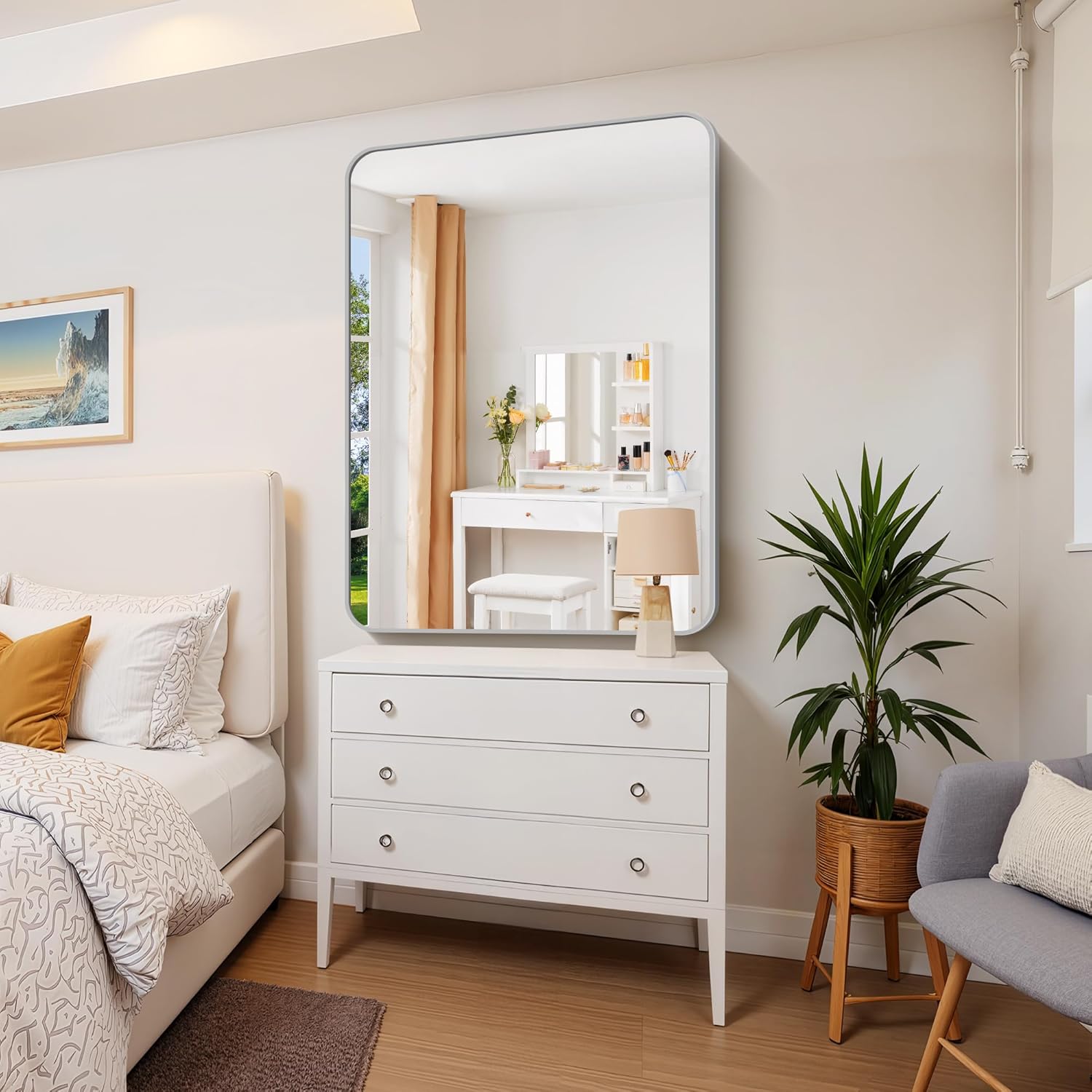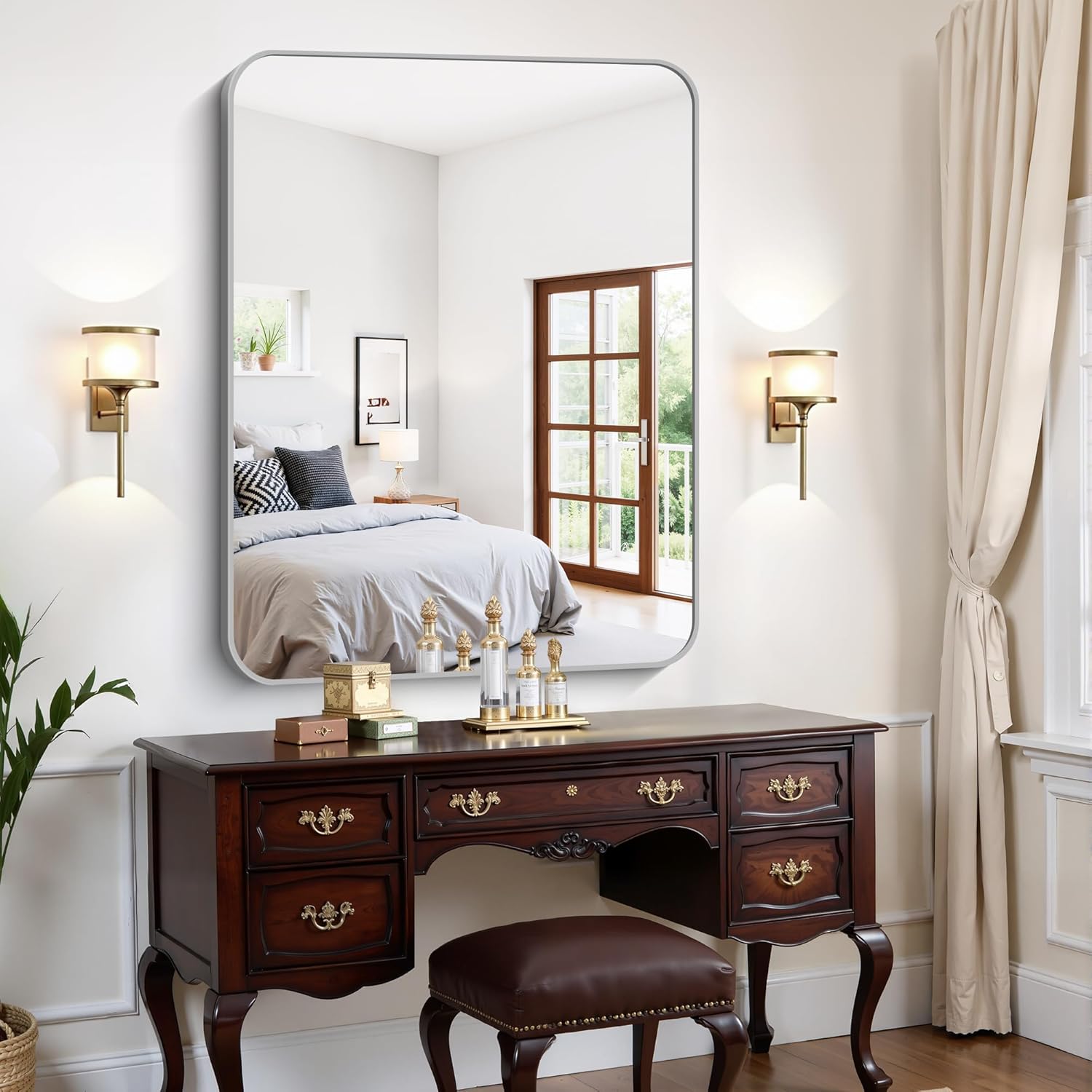 FORBATH 36x48 Inch Silver Bathroom Mirror for Over Sink, Large Rectangular Wall Mirror with Metal Frame, Rounded Corners for Bathroom, Bedroom, Entryway Decor (Horizontal or Vertical)