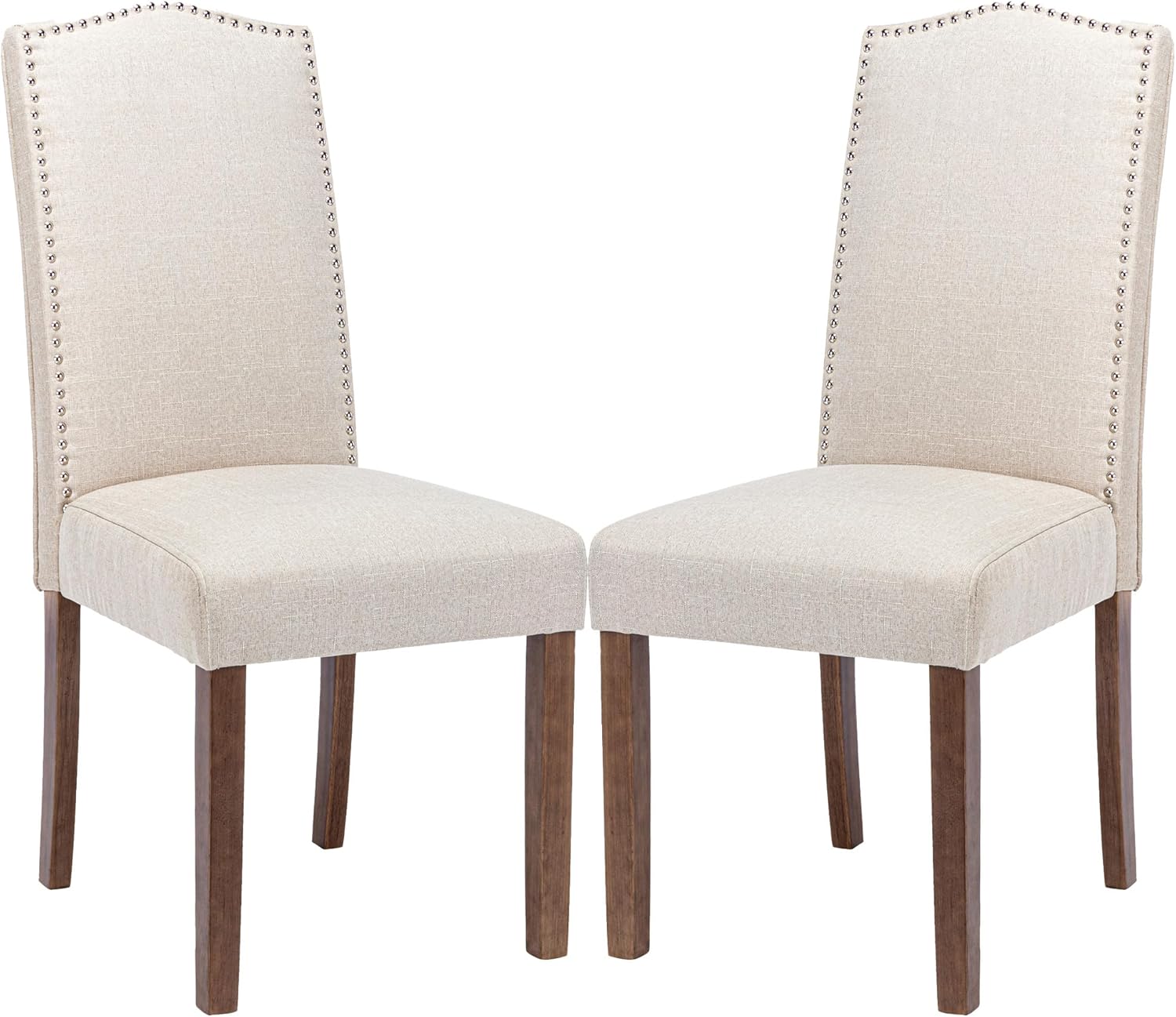 Stylish Upholstered Parsons Dining Chair Kitchen with Silver Nailhead Trim and Sturdy Solid Wood Legs