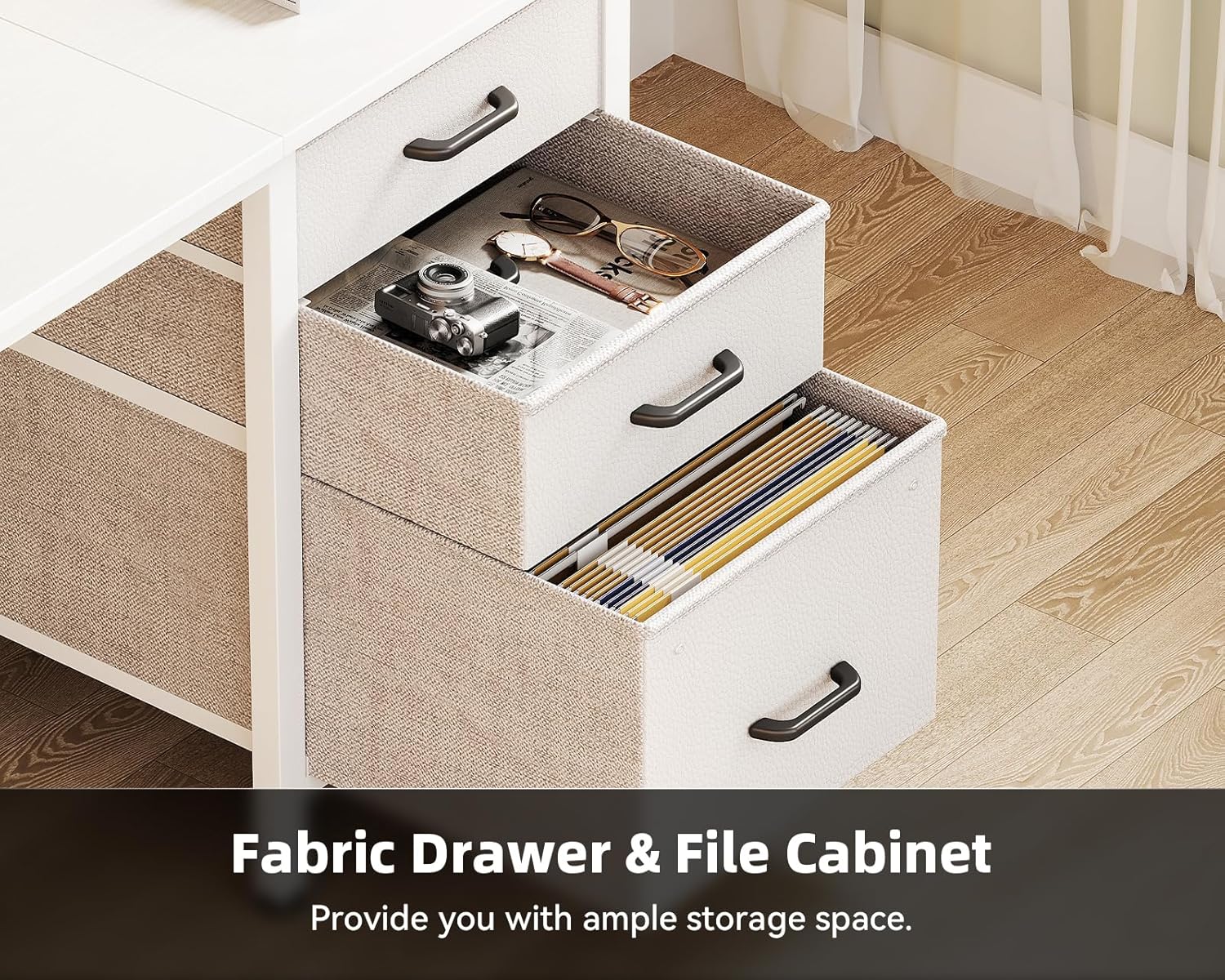 - ăFabric File Cabinet and Fabric Drawersăthe office desk is designed with 1 fabric file cabinet and 2 fabric drawers. The file cabinet can hold letter/ A4/ legal files. Storage drawers are ready to use and easy to clean, keeping your office or study supplies in order and dust-free and ensuring spacious work surface at the desktop.