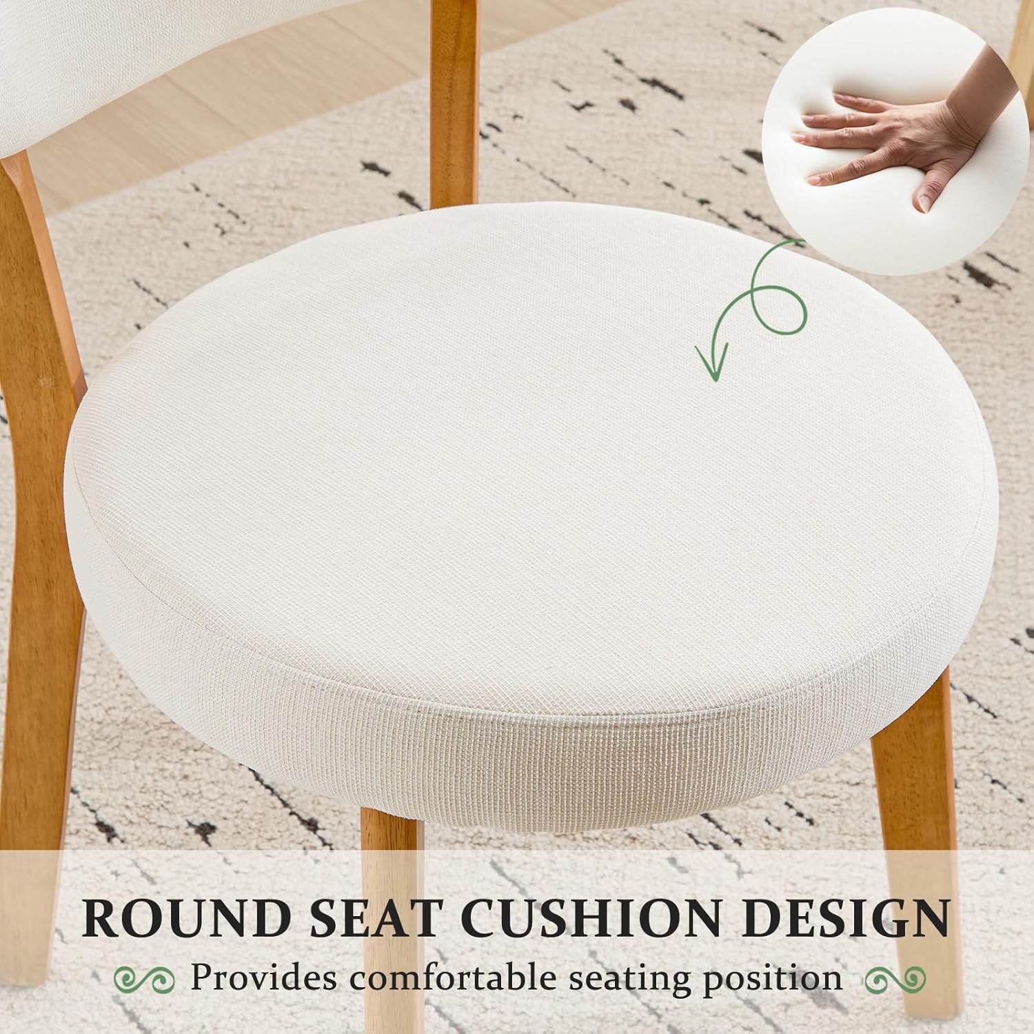 - [Ergonomic Comfort Redefined]-The ergonomic upholstered backrest is angled to conform to the curve of your spine, supporting your mid-back and promoting healthy posture. High-density rebound foam cushions adapt to your body, delivering cloud-like comfort for hours of relaxed dining or conversation.