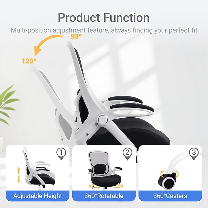 - 【Adjustable Office Chair】Our ergonomic office chair, designed to provide comprehensive assistance for your head, back, hips, and arms. Tailored lumbar support ensures your comfort and well-being. Suitable for people of about 5'5" to 6'2". Easily adjust seat height, backrest, and flip-up arms to cater to diverse needs, offering comfortable support during extended periods of sitting