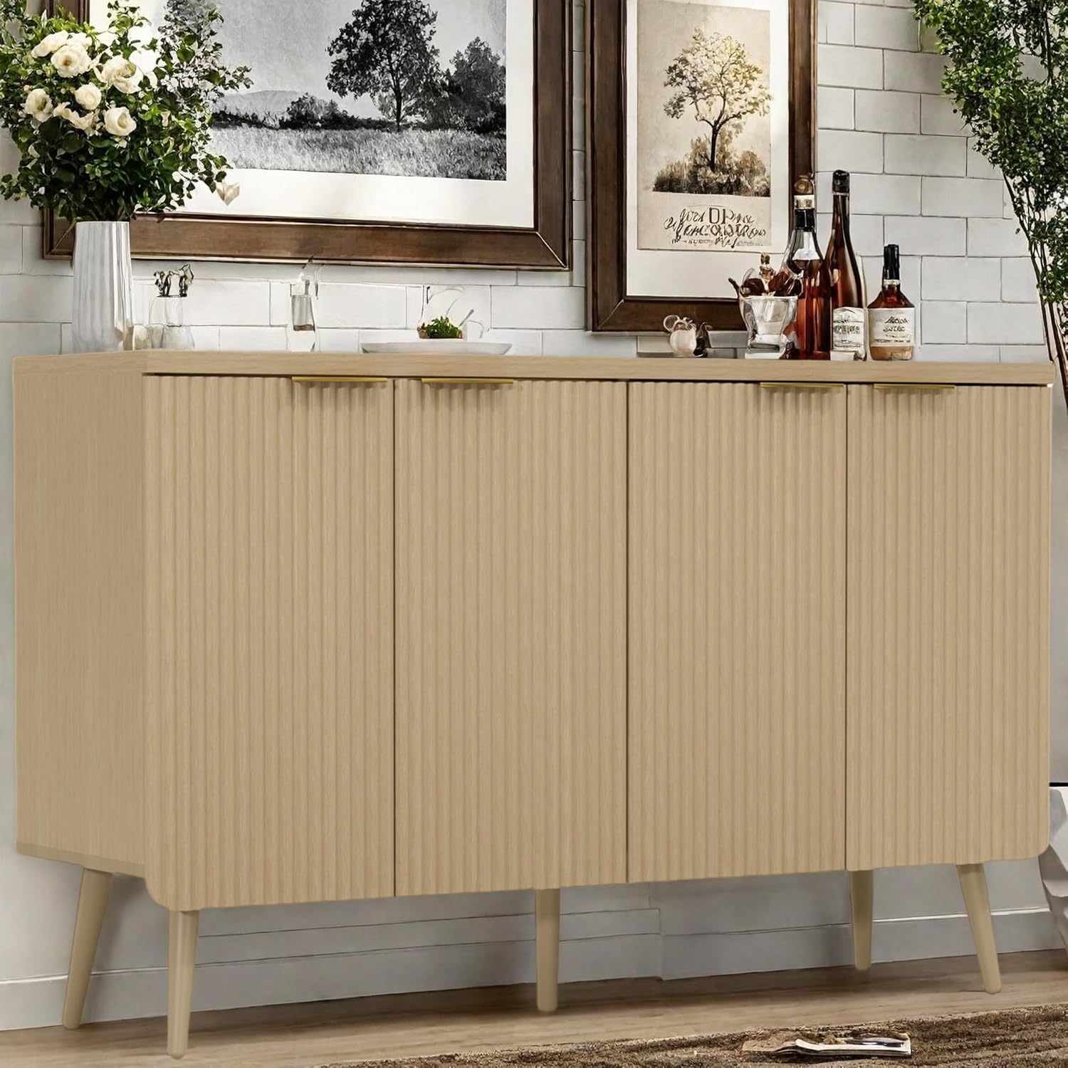 Buffet Cabinet, Sideboard Fluted Cabinet Modern Kitchen Buffet Storage Cabinets with Doors and Shelves, Wood Farmhouse Coffee Bar Station for Entryway & Dining Room & Living Room, Natual Oak