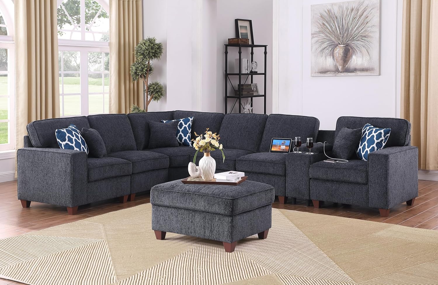 - Chenille Upholstered Comfort: Wrapped in luxurious chenille fabric, this sectional sofa offers an inviting feel. Complete your sofa set with the included 6 throw pillows, making this Modular Sectional Sofa a cozy addition to your living room