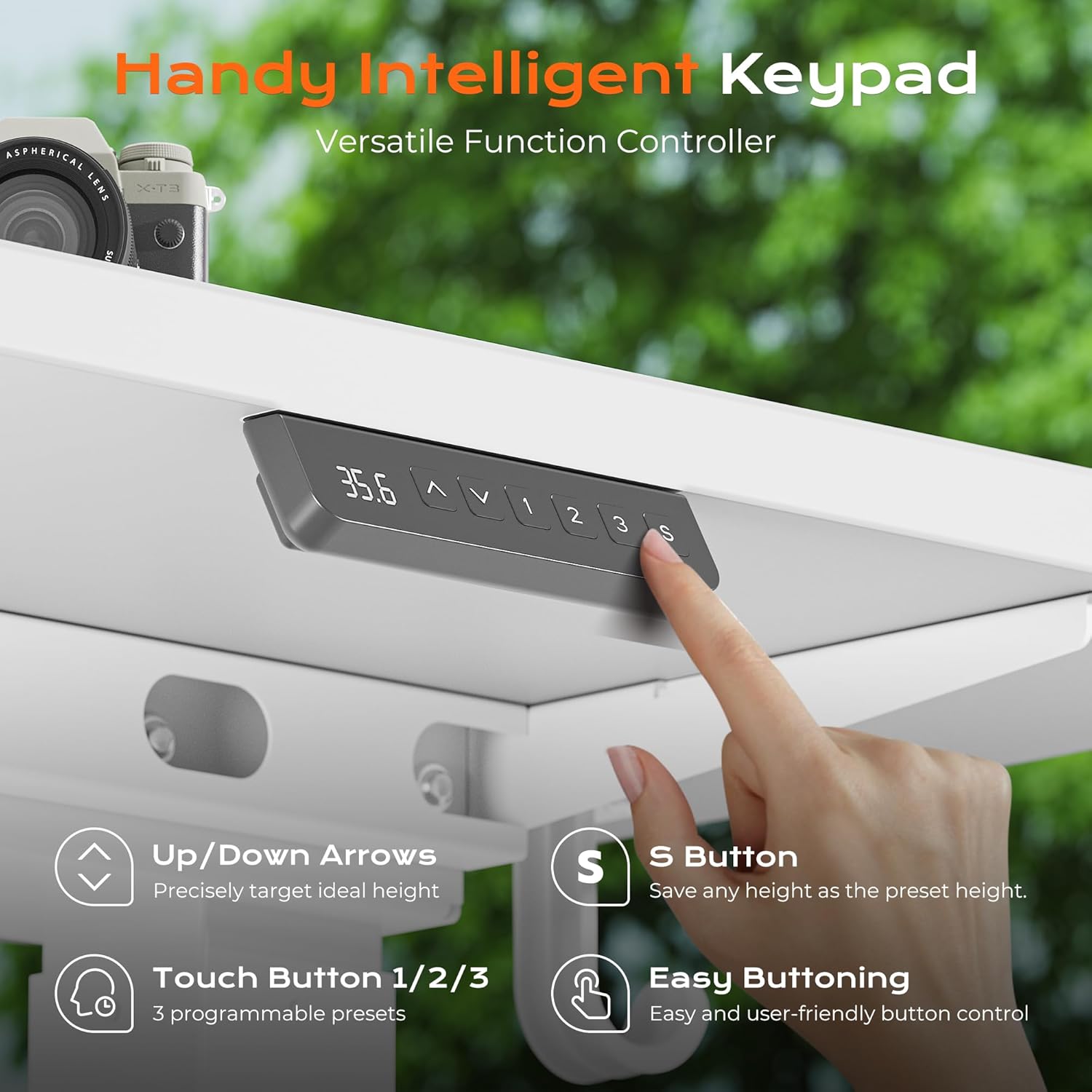 - 【Multi-Function Intelligent Keypad】 Operating Voltage: 110 - 220V. Equipped with a clear LED display and smooth-touch buttons, this intelligent keypad offers 3 height presets for your preferred positions. Effortlessly switch between sitting, standing, or anything in between with a single press. Adjustable height range: 28.4"~ 46.5". The “S” button allows you to save your desired heights to presets 1, 2, and 3