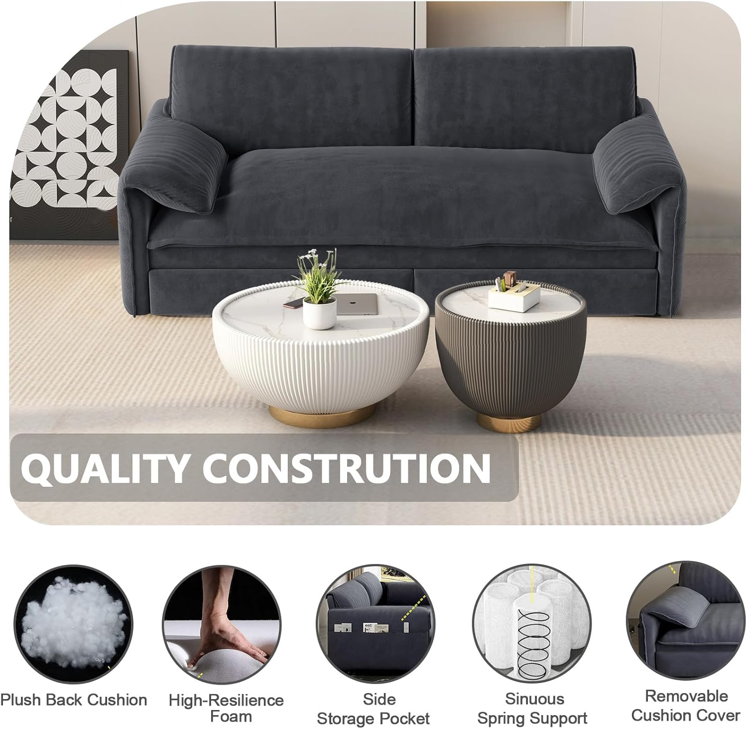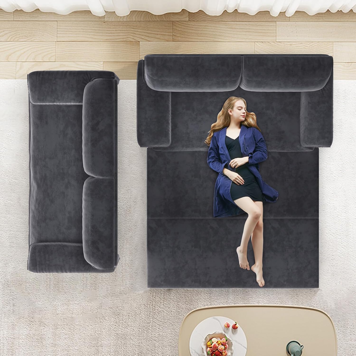 - Sleeper Sofa Couch with Pullout Bed: Designed with high-resilience sponge cushioning wrapped in soft, breathable velvet. Reinforced with springs, it provides long-lasting support whether you're sitting or sleeping, and quickly restores its shape without sagging.