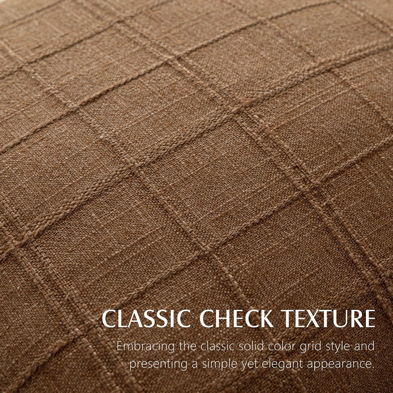 Foindtower Set of 2 Decorative Linen Check Throw Pillow Covers Neutral Long Body Lumbar Cushion Covers Farmhouse Vintage Boho Home Decor For Sofa Chair Couch Bedroom Living Room,14×36 Inch,Brown Hazel