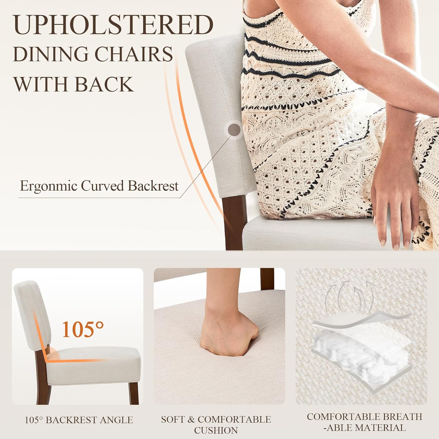 - ERGONOMIC DINING CHAIRS WITH BACK: Upholstered dining chairs are ergonomic. The padding and support provided by the soft back and cushion promote great posture and reduce the risk of back pain or discomfort. Whether you are looking for comfortable seating for dining room, living room, office space, bistro, or farmhouse, our comfy accent dining chairs are the great choice,with their combination of style, comfort, and versatility.