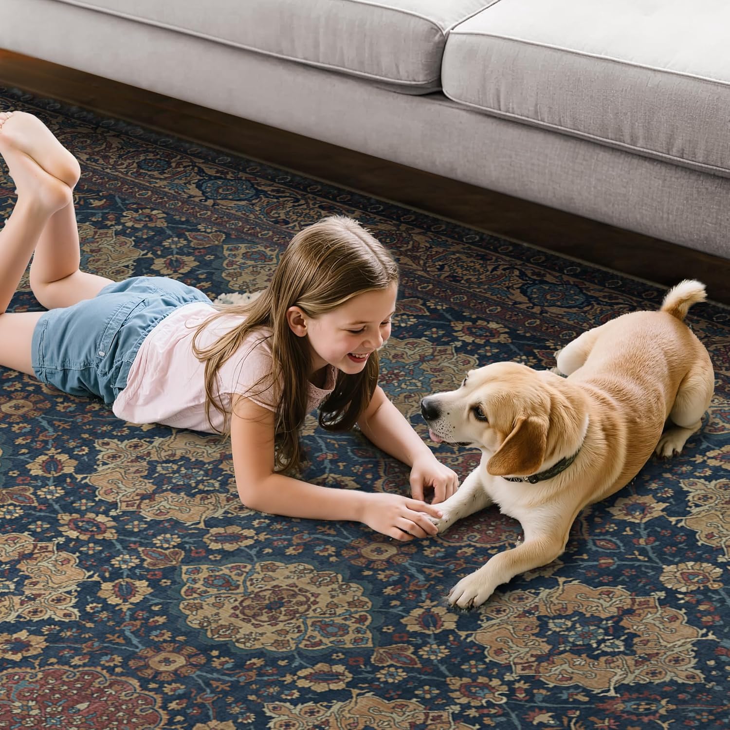 - Kids & Pets Friendly:Our rug is specifically designed to accommodate the needs of families with pets and children, featuring a low pile for easy care and durability. It effectively resists the accumulation of pet hair and withstands everyday wear and tear, making it a prime choice for active homes.