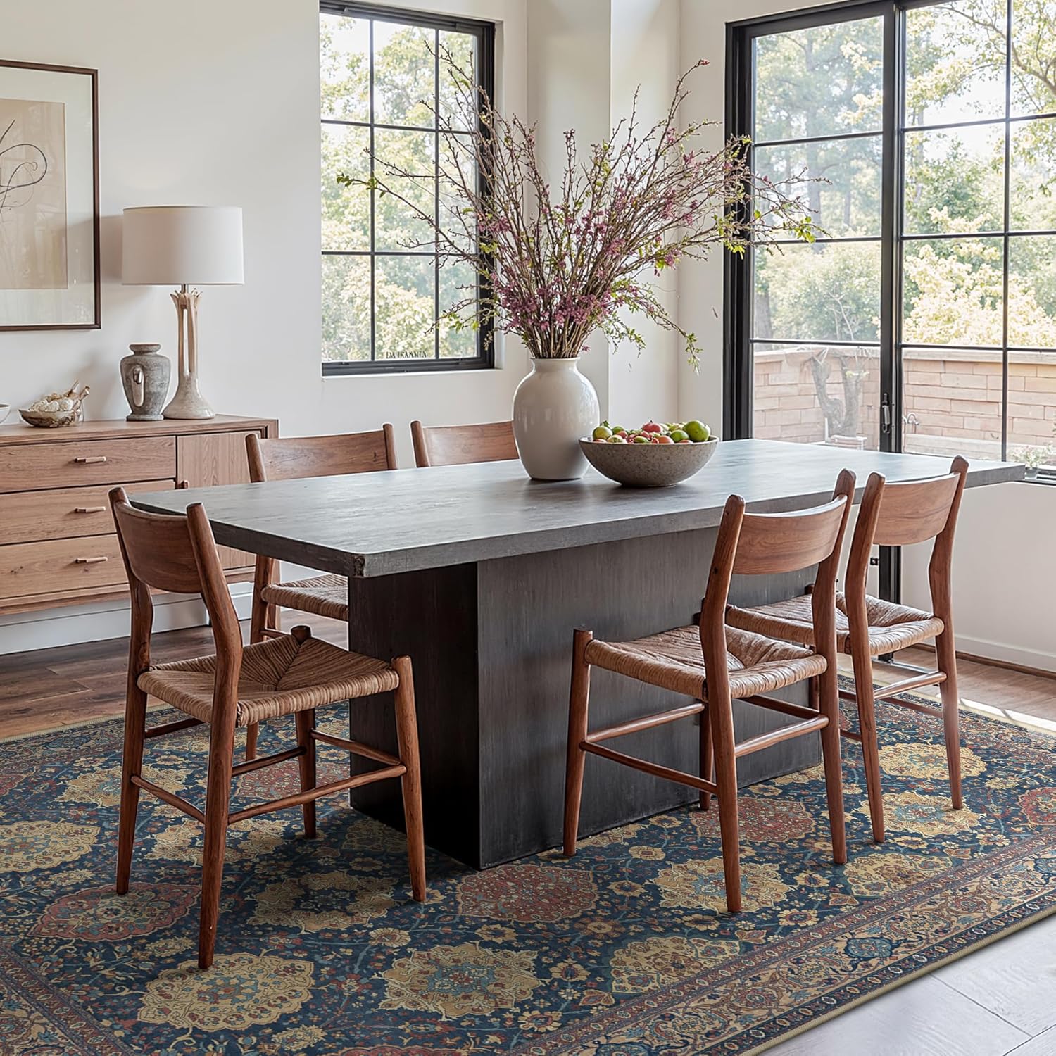 - Non-Shedding & Non-Slip Rug:The non-slip design of our area rugs, backed by high-quality rubber, provides a stable and secure foundation, preventing dangerous slips and movement. With reinforced edges and a non-shedding surface, this makes our rugs a safe choice for homes with children, pets, or elderly family members.