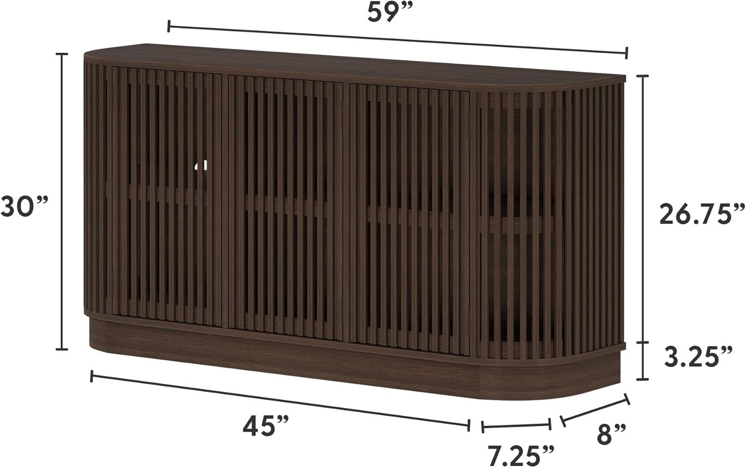 - Dimensions: Wooden sideboard measures 59" L x 16" W x 30" H, with each door measuring 13.75” L x 1” W x 25” H.