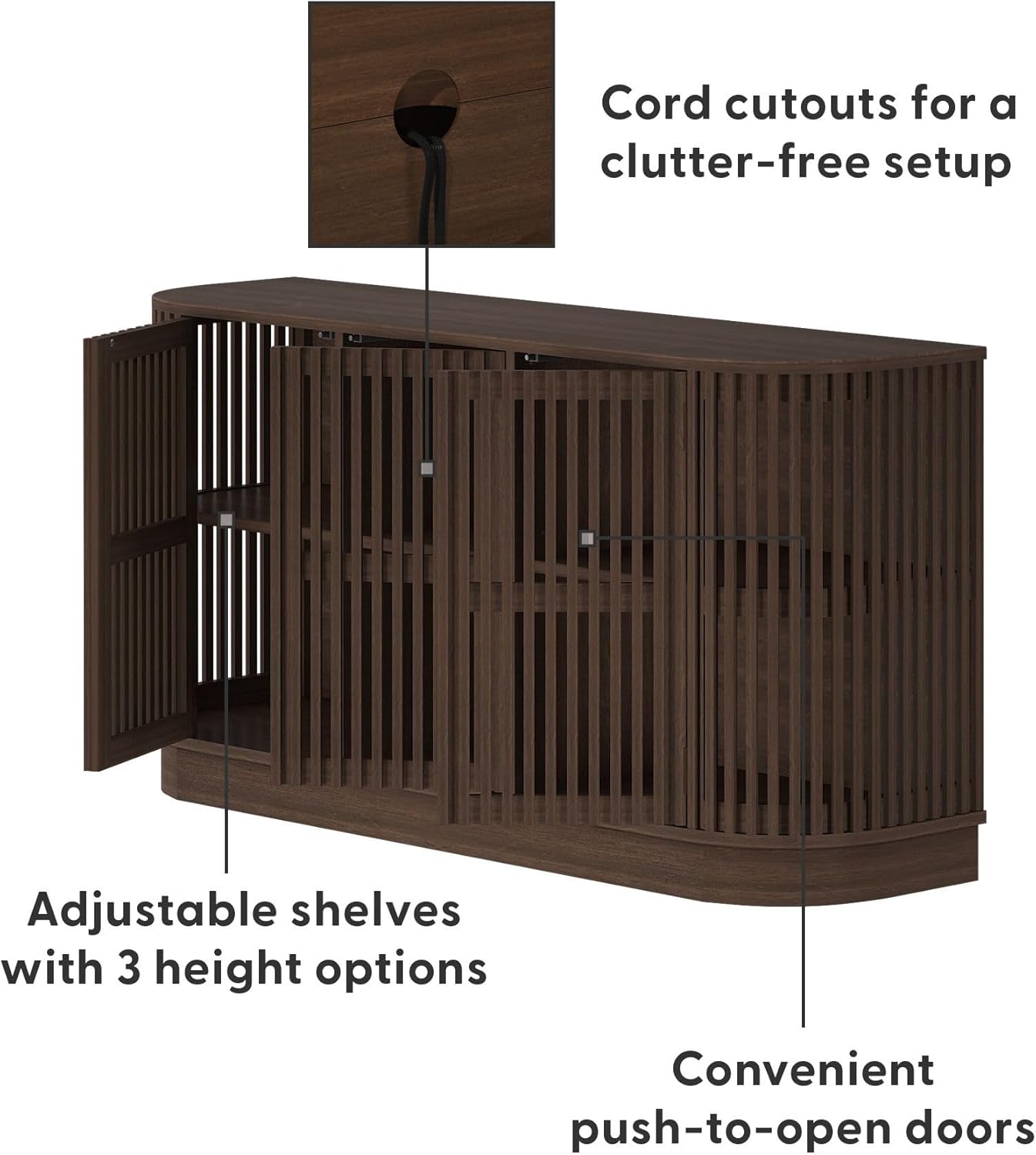 Plank+Beam Contour Wood TV Stand, Three Door Solid Wood Entertainment Console with Storage, 59" L x 16" W x 30" H, Walnut