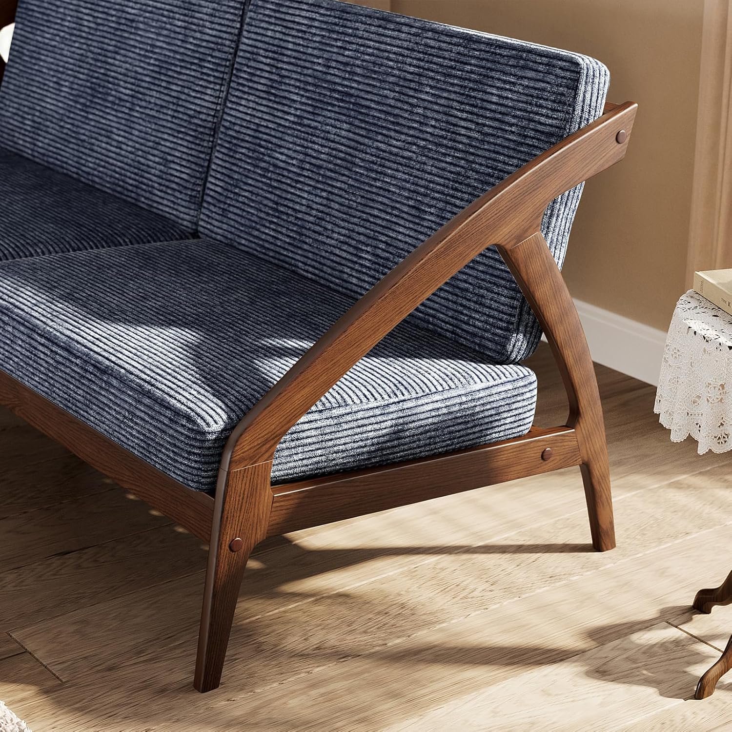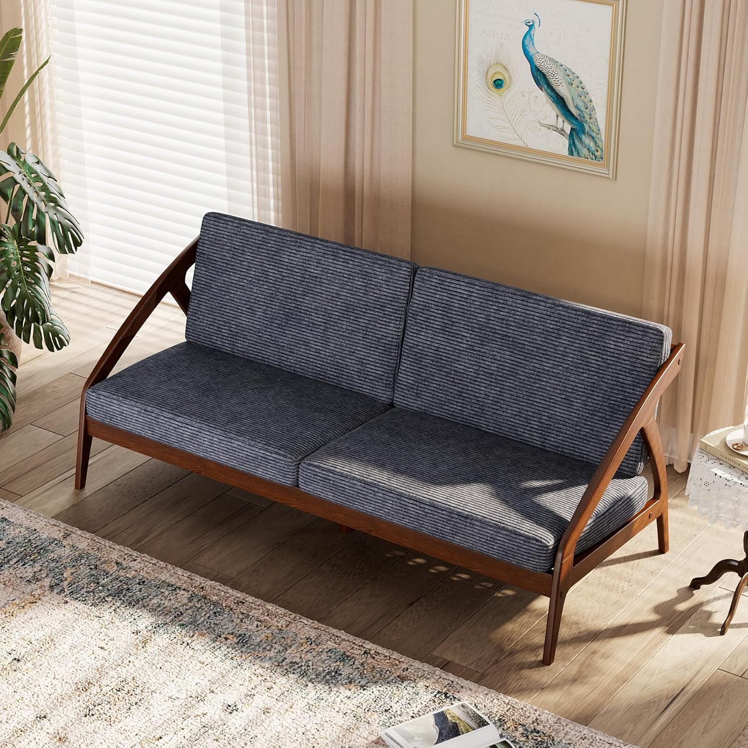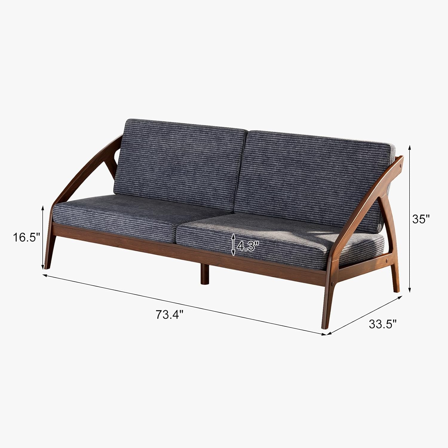 73.4" Solid Wood Upholstered Sofa, Comfortable Seat Cushion, White Waxwood Full Solid Wood Frame, Removable Cover, Suitable for Bedroom and Living Room, Easy to Assemble, Office Sofa