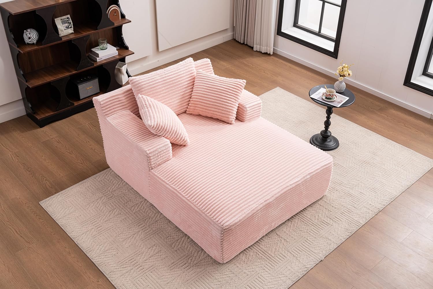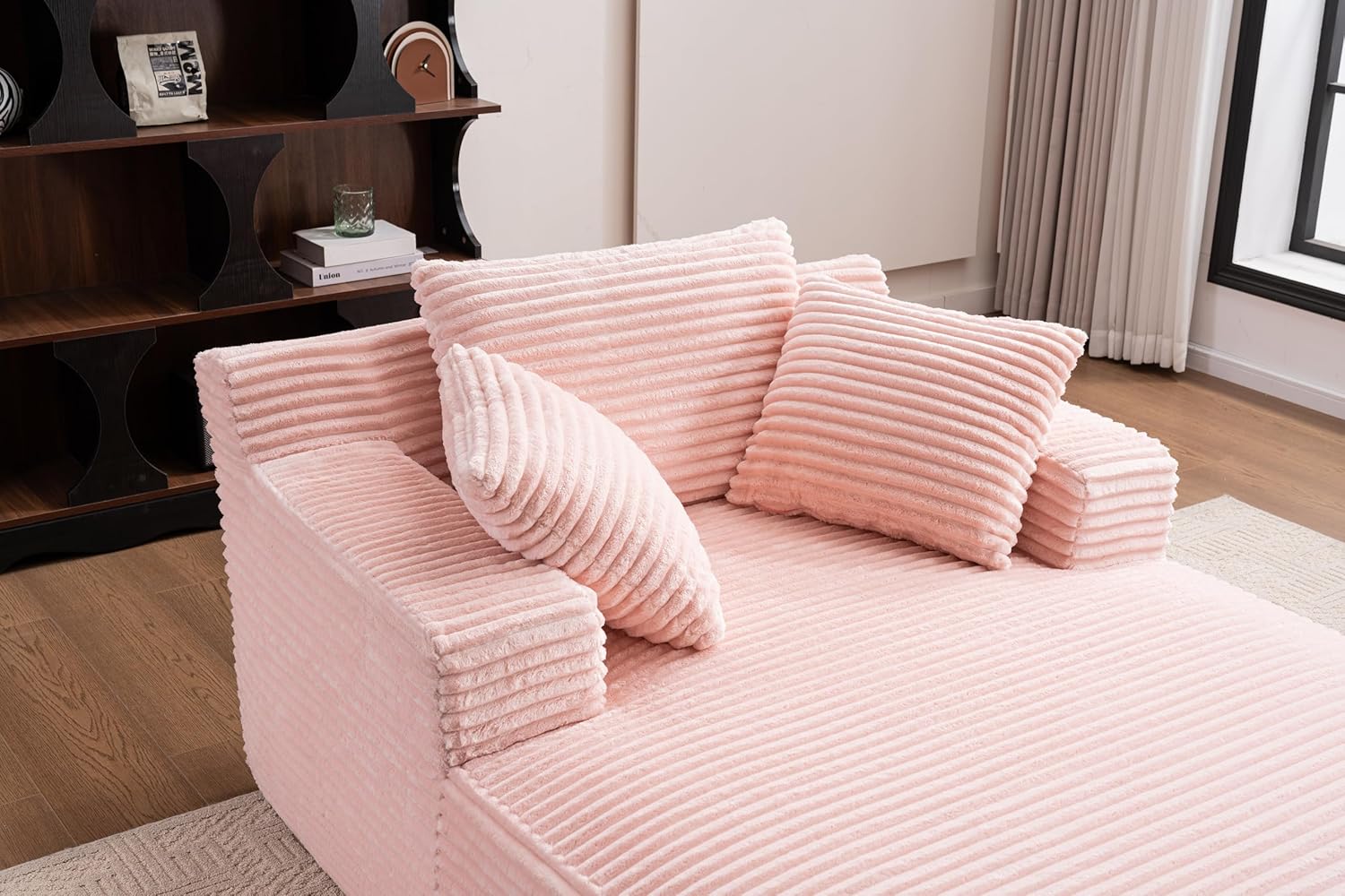 Oversized Chaise Daybed Lounge Sleeper Chair Sofa Bed Indoor, Fluffy Corduroy Upholstered Sleeper Recliner Sofabed Extra Wide Full Foam Cloud Sofabed W/3 Pillows for Home/Apartment Living Room Bedroom