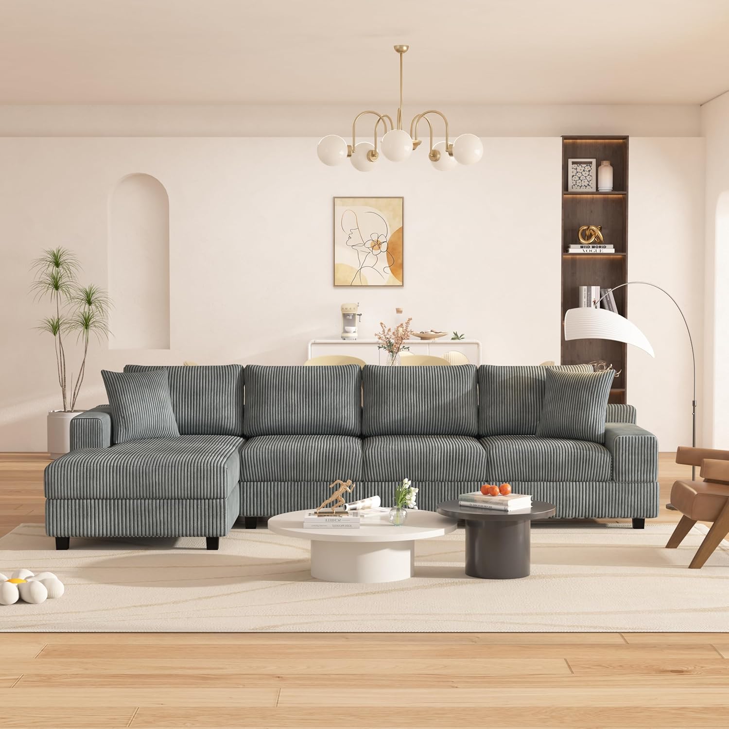 - Extra Wide Chaise Lounge :The oversized 50" deep chaise lounge corduroy sectional with spacious sleeping area, you can choose to use the sofa as a left L shaped sofa or a right L shaped sofa to fit your house.
