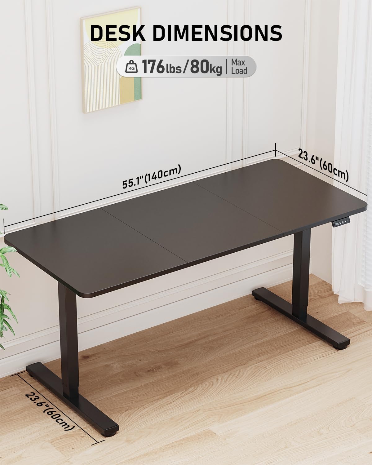 - Large and Ergonomic Workspace: Designed with efficiency in mind, this standing desk fits any large space with a 55" x 23.6" surface. Whether itโs a laptop, monitor, or office supplies, thereโs room for all. Enjoy an ergonomic workstation layout that promotes comfort and productivity in any environment.