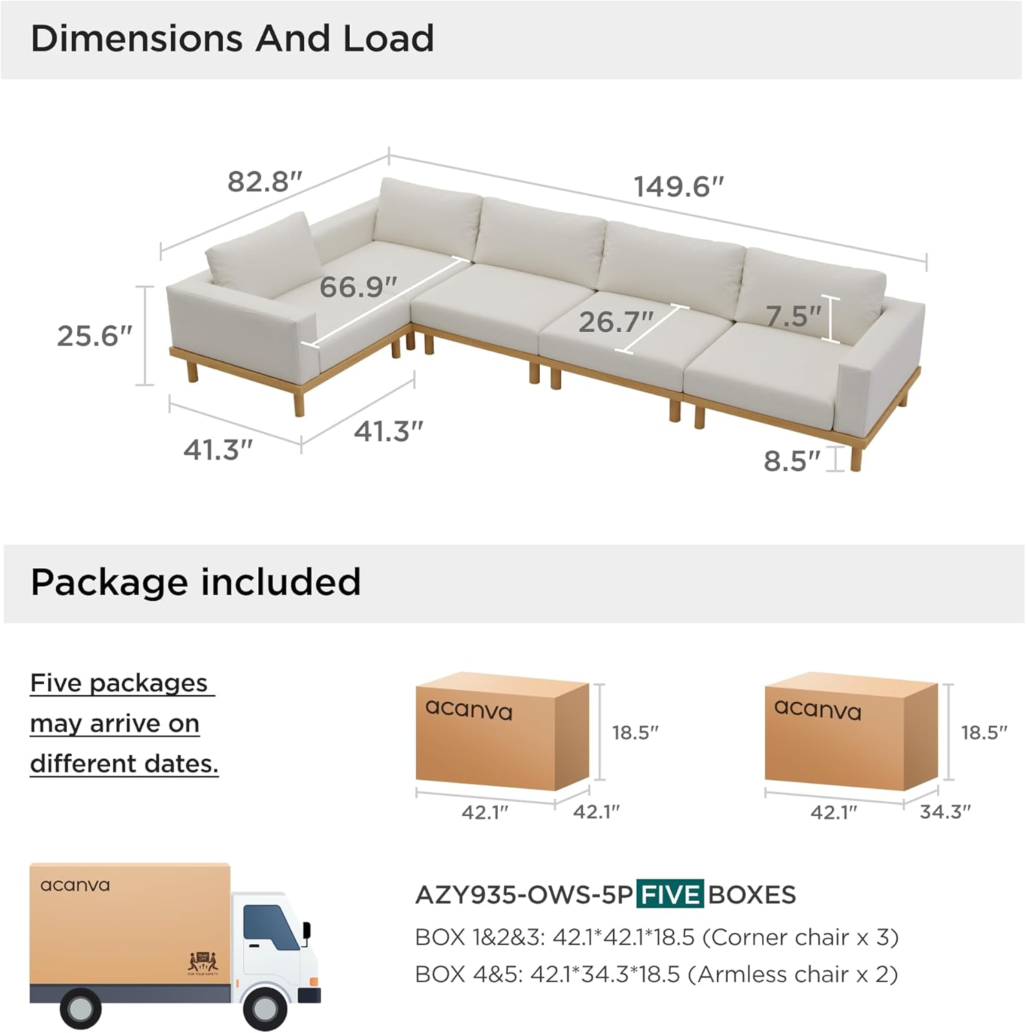 Acanva Minimalist Modular Sectional Sofa for Living Room, Wide & Deep Seat Convertible Furniture Set with Metal Frame and Movable Covers, 5 Piece, Off White
