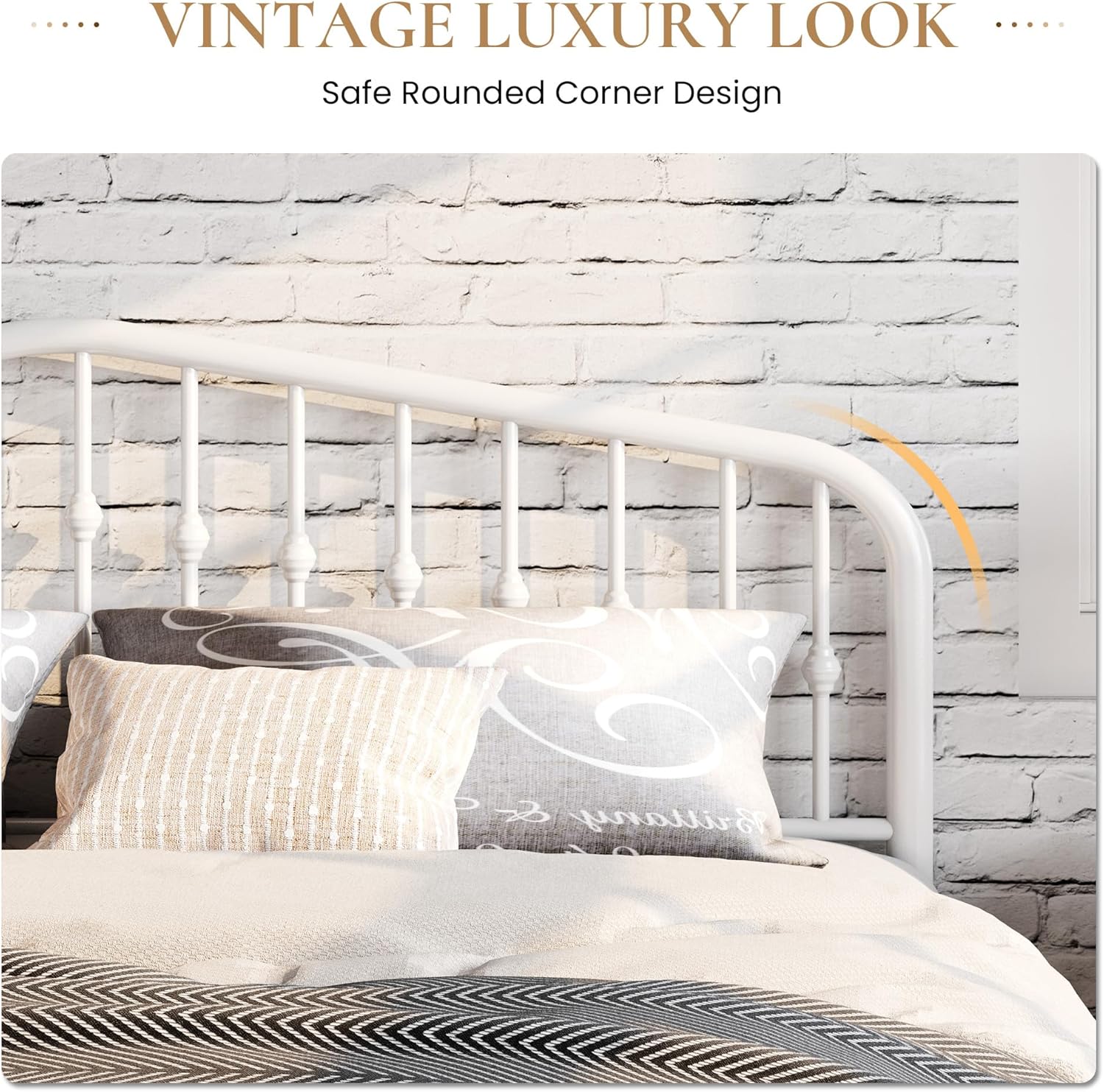 SHA CERLIN King Size Metal Platform Bed Frame with Victorian Style Wrought Iron-Art Headboard/Footboard, No Box Spring Required, White