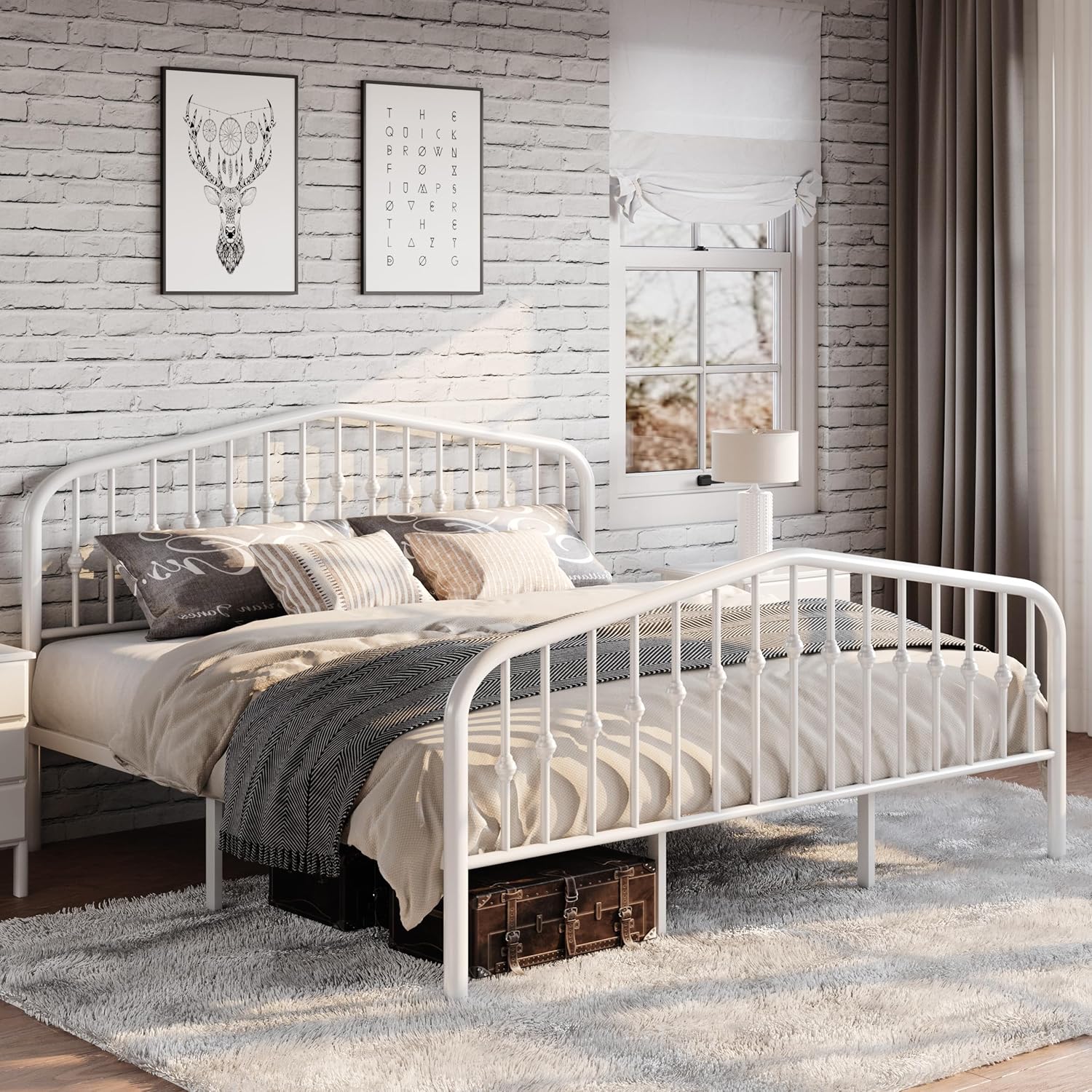 - AMPLE UNDERBED STORAGE: Our metal bed frames provide plenty of storage space underneath, with a vertical clearance of approximately 12.4 in. This allows for easy access to your belongings, while keeping your bedroom tidy and organized