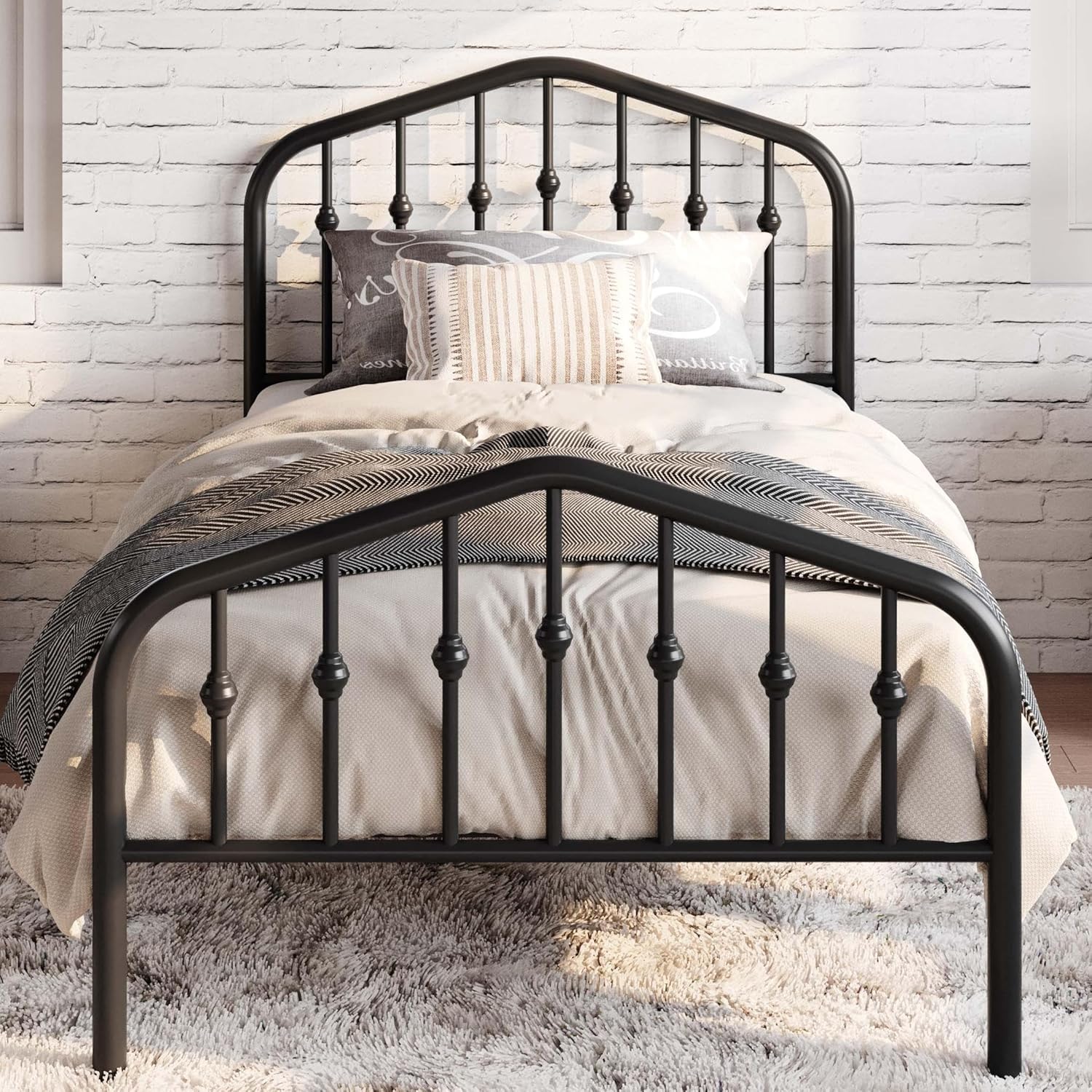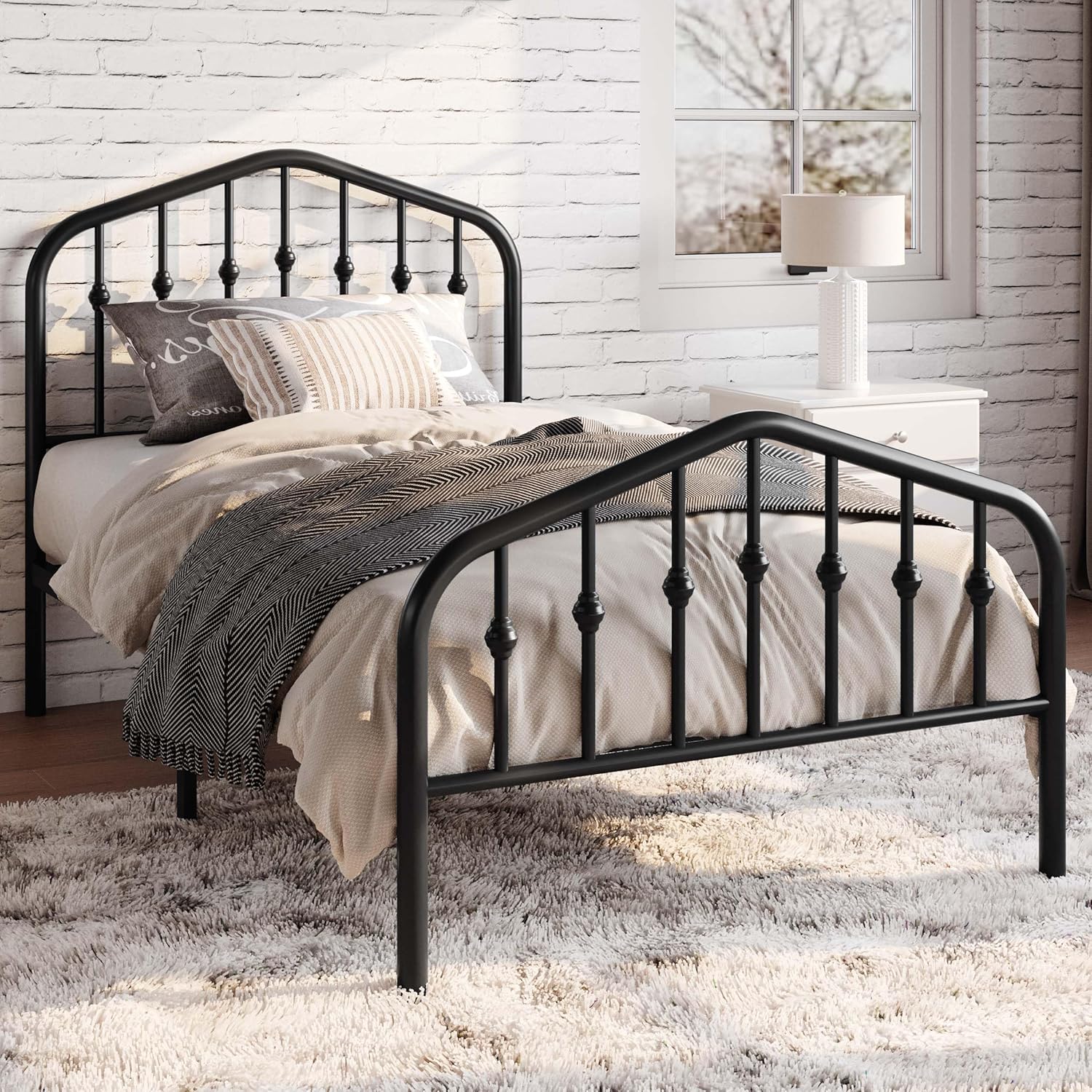 SHA CERLIN Twin Size Metal Platform Bed Frame with Victorian Style Wrought Iron-Art Headboard/Footboard, No Box Spring Required, Black