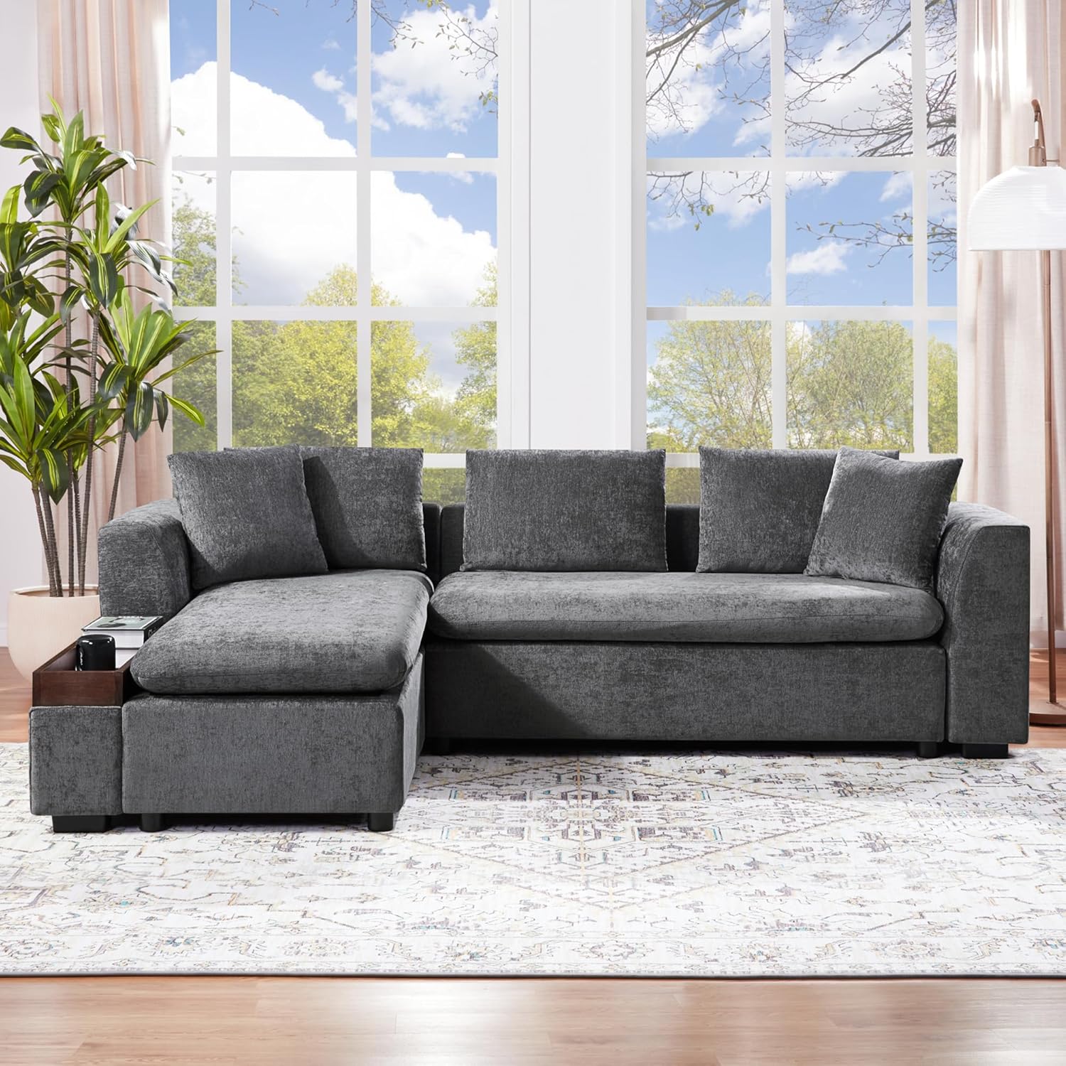 - ăLuxury Chenille UpholsteryăCrafted with premium chenille fabric for superior softness and durability, this sofa resists daily wear while maintaining a plush, inviting texture that complements gray-toned interiors.
