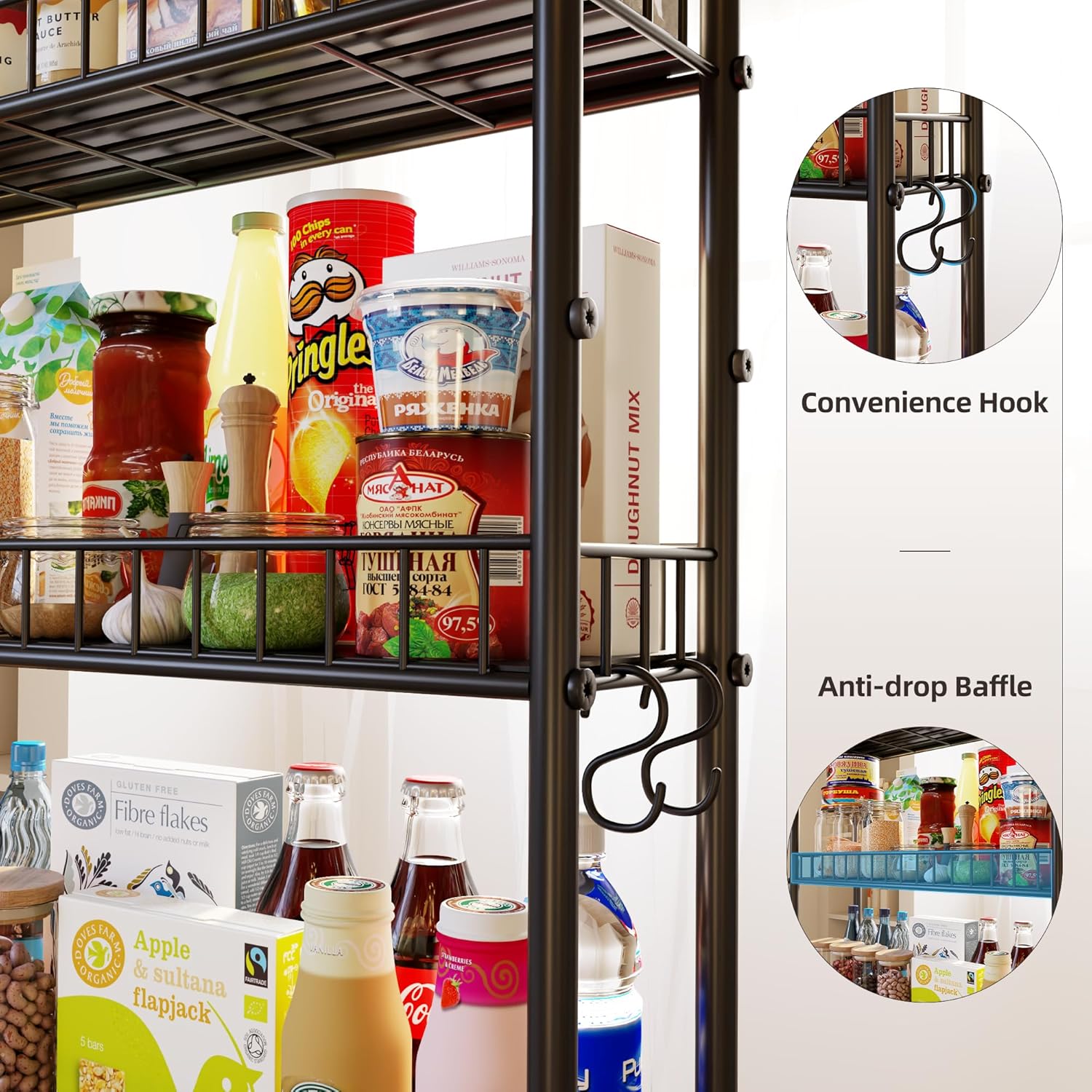 - Vertical Storage with 6 Tiers & Hooks: Maximize every inch with 6 open metal shelves and 6 handy side hooks. Use this narrow storage cart to organize kitchen spices, toiletries, laundry items, or cleaning supplies with ease