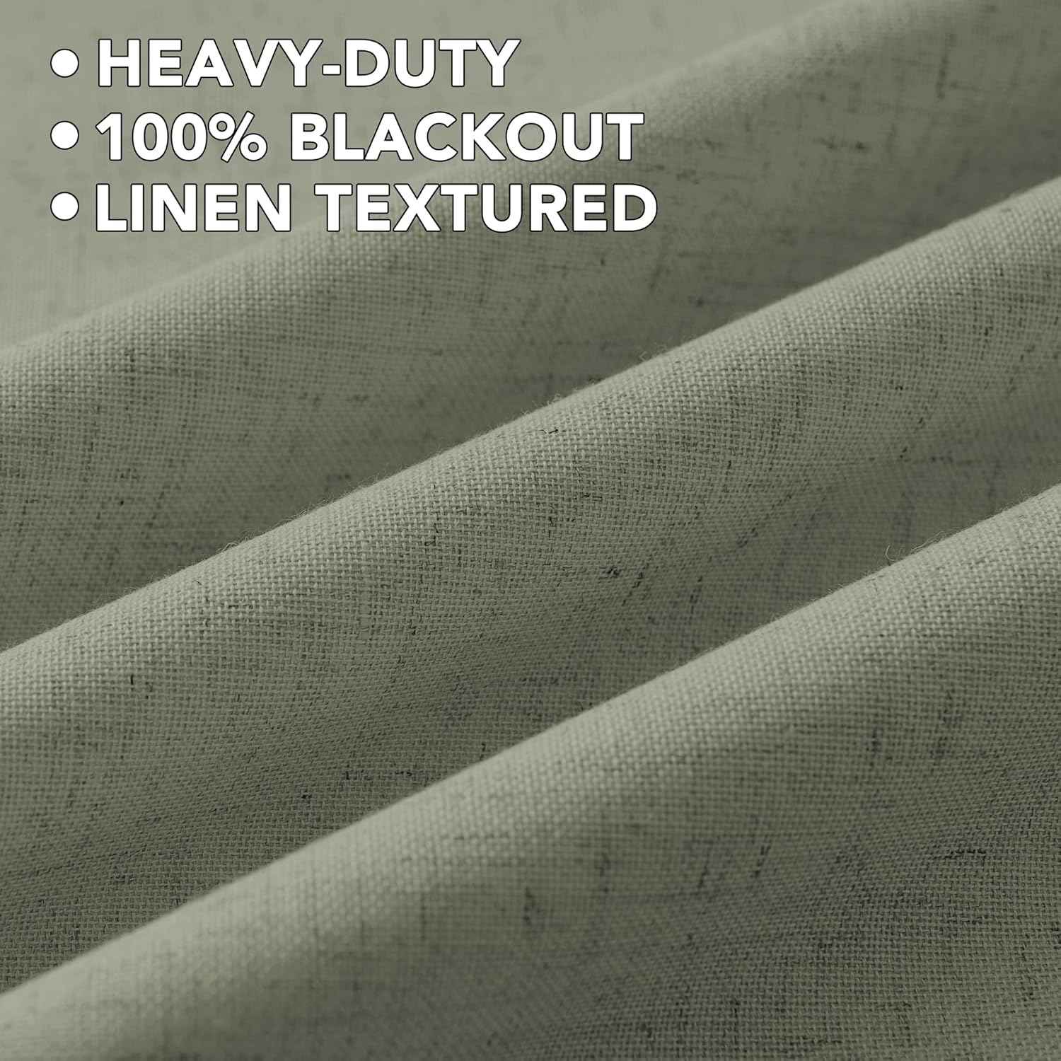 H.VERSAILTEX Linen Curtains 100% Blackout Curtains for Bedroom 108 inch Long Full Light Blocking Nature Linen Blended Window Curtains for Living Room Nickel Grommet (2 Panels, Heathered Dried Sage)