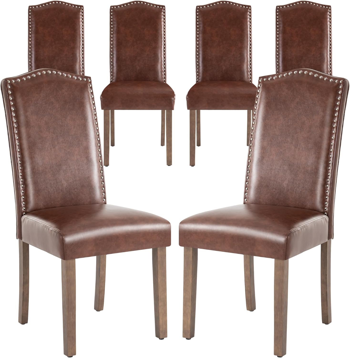 Stylish Upholstered Parsons Dining Chair PU Faux Leather with Silver Nailhead Trim and Sturdy Solid Wood Legs