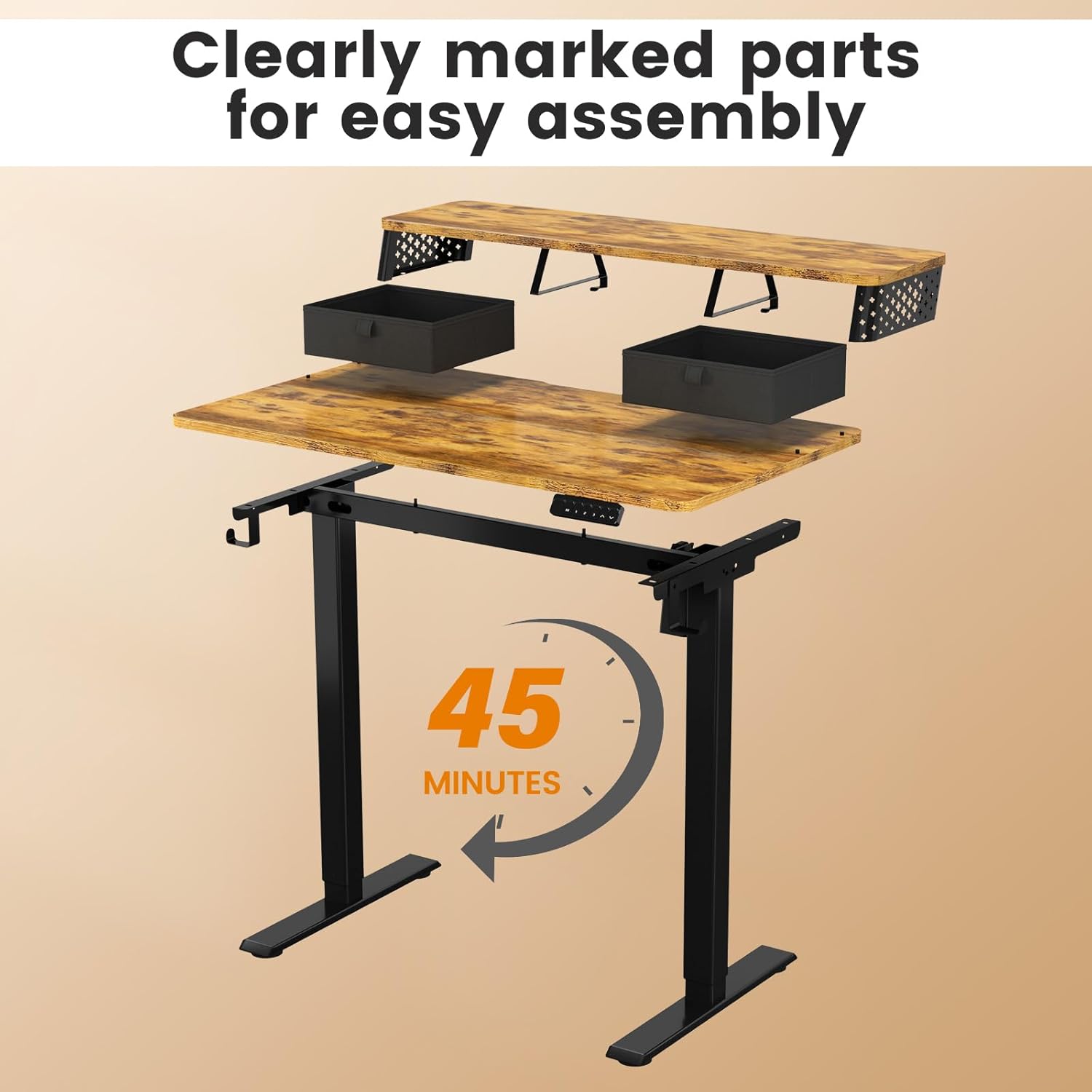 - 【Convenient Assembly Experience】: This small standing desk is designed for easy installation, and the instructions have detailed step-by-step diagrams, clearly marked parts, and a dedicated L-shaped Allen wrench to help you install quickly