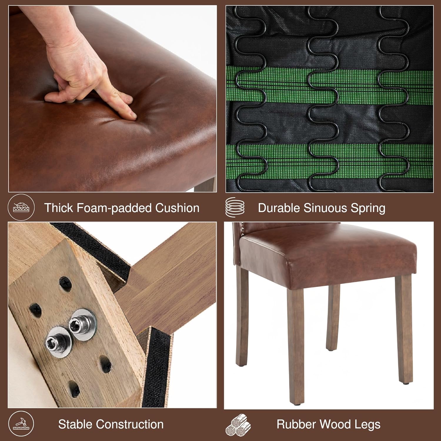 - Luxurious & Practical Material: These parson's dining chairs feature cushioned seats upholstered in premium PU Faux Leather. The high backs and cushioned seats offer a comfortable and supportive sitting experience, making them suitable for the kitchen, living room, or waiting room.