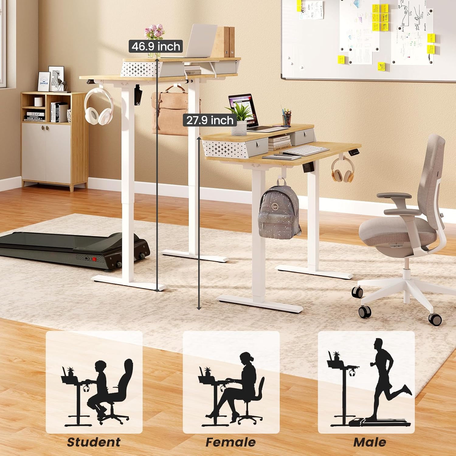 - 【With 2 Drawers】: This adjustable standing desk comes with drawers and hooks, which can improve the neatness of the desktop by up to 60%. This height-adjustable standing desk can flexibly adapt to the different height requirements of children, teenagers and adults, and meet a variety of usage scenarios such as office, study, and creation