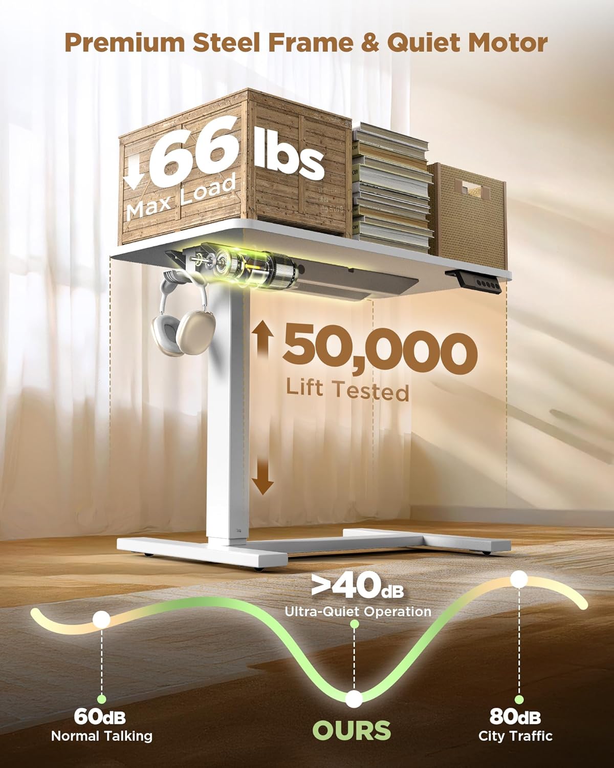- 【Smooth Height Adjustment】YOLEZO electric standing desk features a premium hidden DC motor with less than 40 dB noise, smoothly adjusting from 28" to 46.9". With 3 memory presets and easy up/down buttons, it gives you the perfect height for your bedroom, couch, or small workspace anytime.