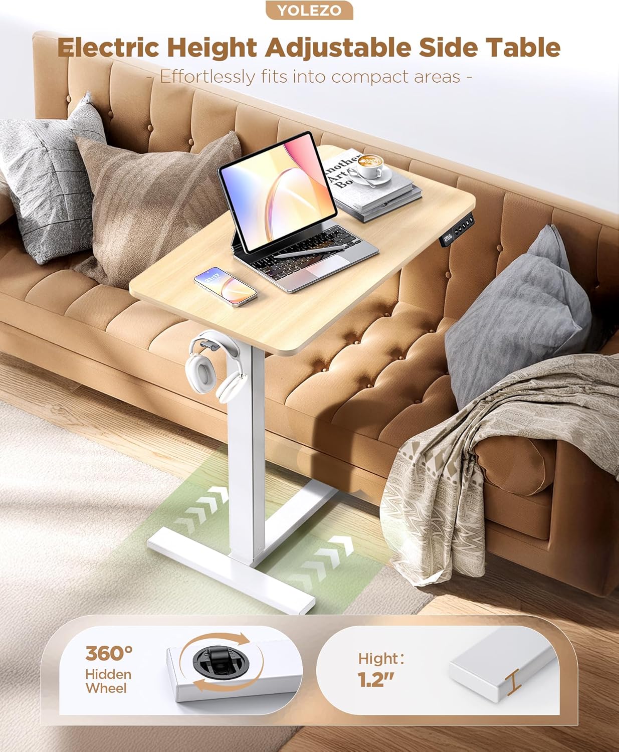 - 【Hidden Wheels & Durable Steel Frame】YOLEZO desk is built with sturdy steel legs 33% thicker than others, supporting up to 66 lbs. The 360° hidden wheels roll smoothly under sofas or beds. Pre-installed nuts make assembly cleaner and stronger — no messy wood chips or cracks.