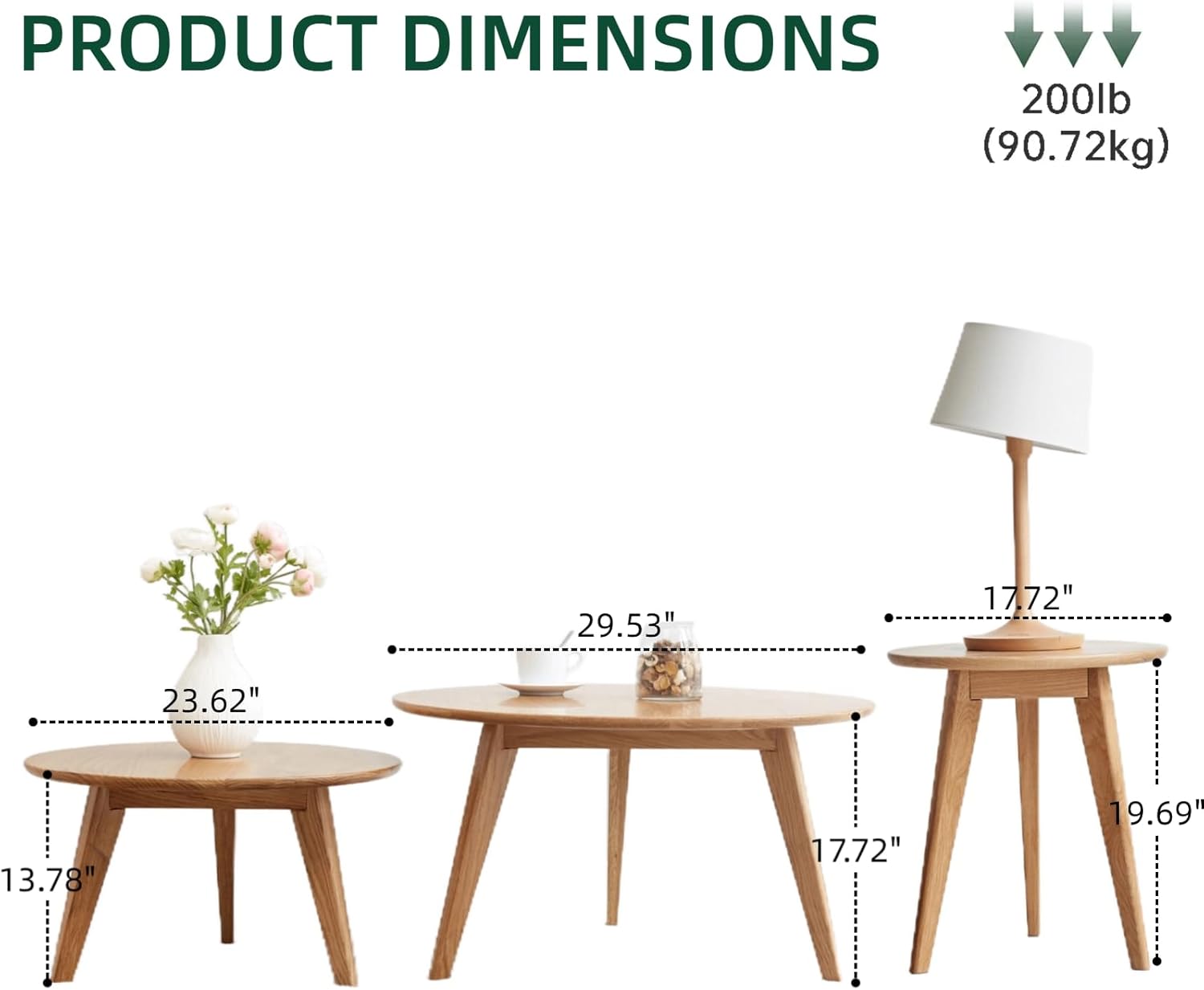 - 【Vadisun Value Combo】Choose from three versatile sizes to suit your needs: (small tabletop)17.72" D and 19.69" H.(medium tabletop) 23.62" D and 13.78" H. (large tabletop) 29.53"D and 17.72"H. The solid wood legs provide excellent support, and the tabletop holds up to 200 lbs, making it as functional as it is stylish.