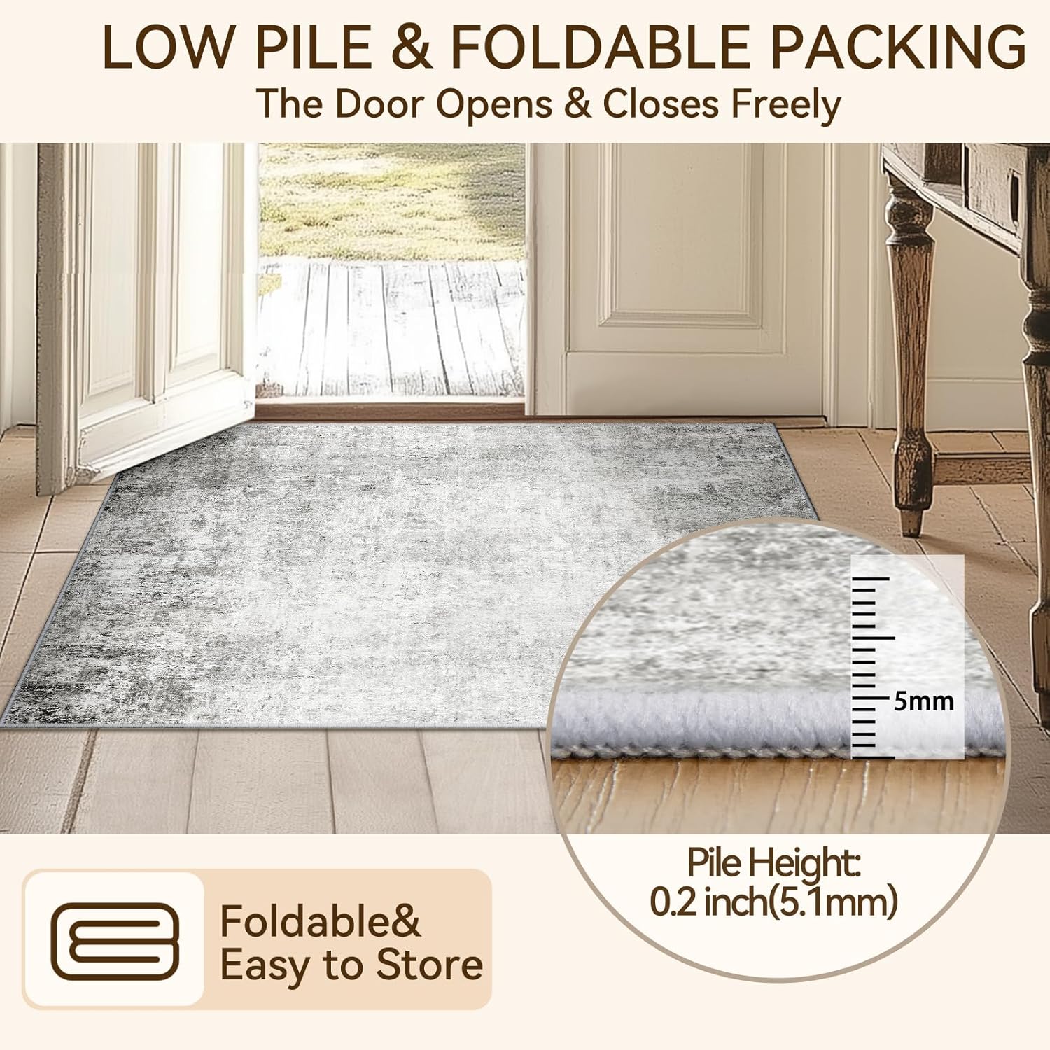 Washable Area Rugs 8ft Non-Slip Modern Abstract Soft for Living Room Entryway Bedroom Nursery, Print Pattern, Gray White Grey