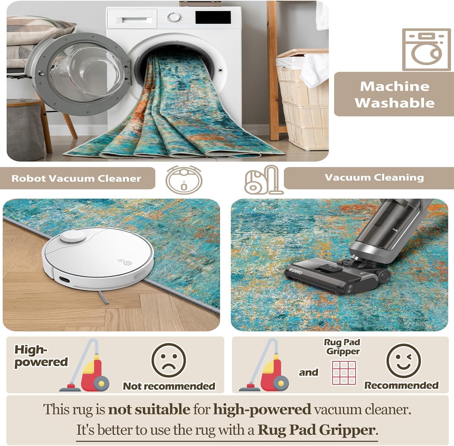 Washable Area Rugs 8ft Non-Slip Modern Abstract Soft for Living Room Entryway Bedroom Nursery, Print Pattern, Teal Blue Green Orange Rust Red Colorful
