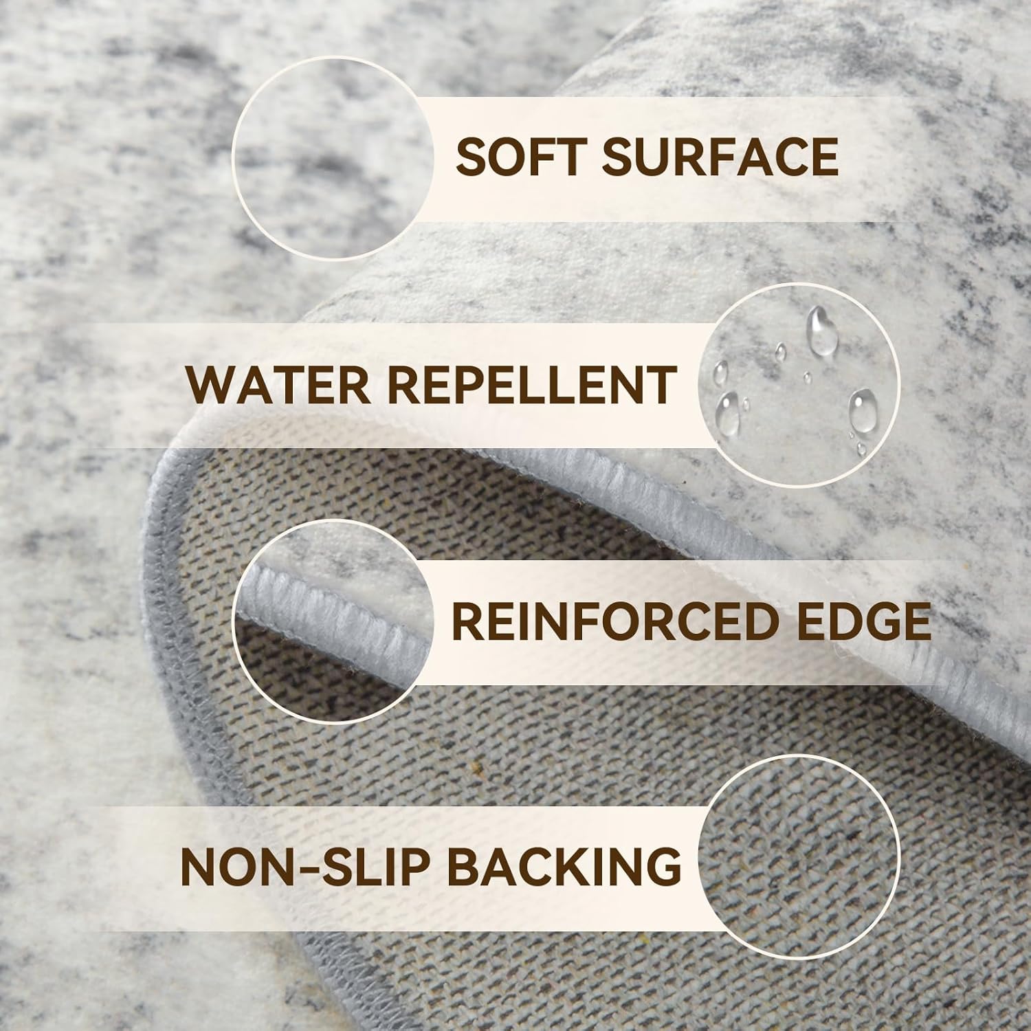 - Tides Series – Effortless style that flows with your life.This modern machine-washable non-slip rug features reinforced edges and a low-pile design that resists dirt. Its water-repellent surface makes spills easy to clean - liquids bead up for quick wiping. Simply machine wash in cold water (no bleach) to refresh. The non-slip backing keeps it securely in place. A perfect blend of function and contemporary design for active homes.