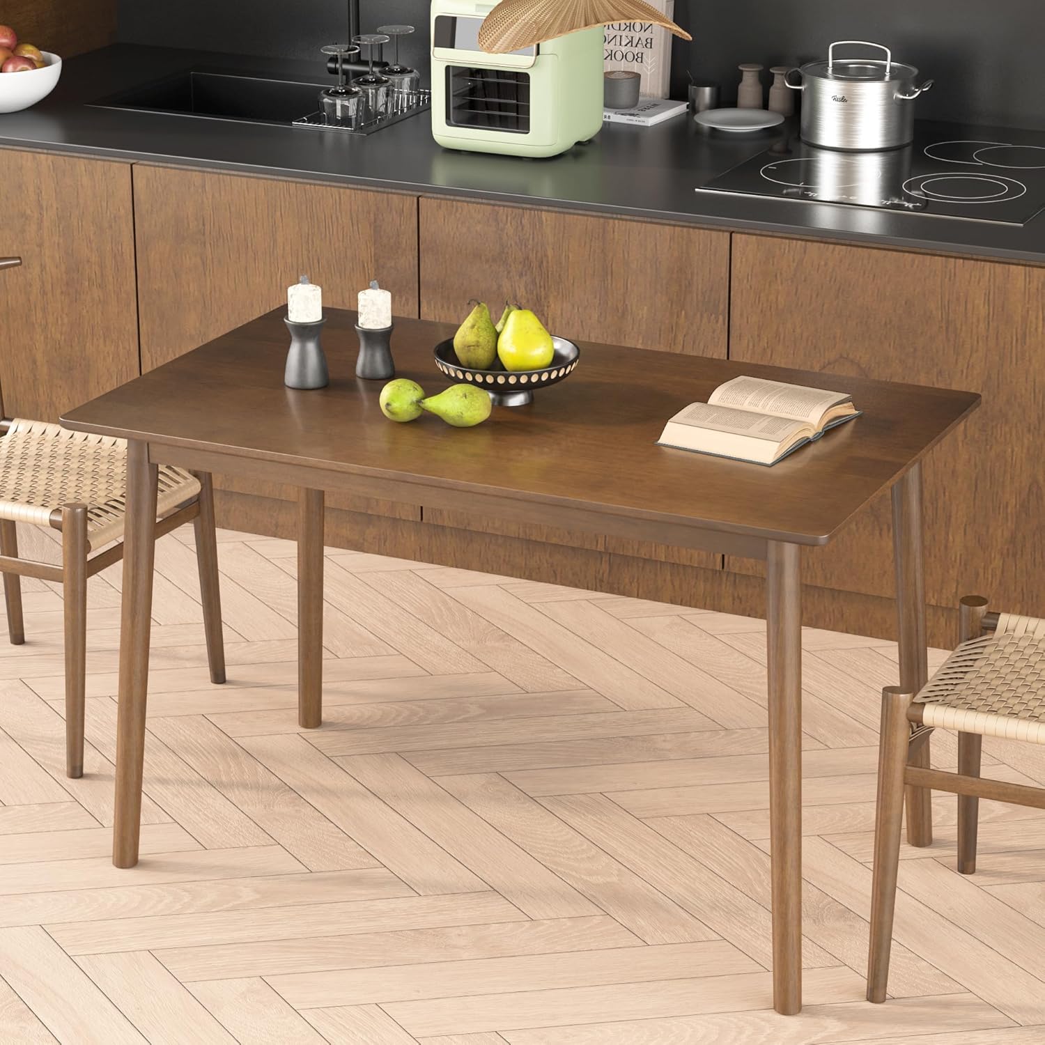 - 【Built to Last with Solid Wood】Crafted from 100% solid rubberwood for unmatched durability. This wooden dining table boasts a reinforced structure, scratch-resistant finish, and smooth rounded edges—ideal for daily family gatherings.