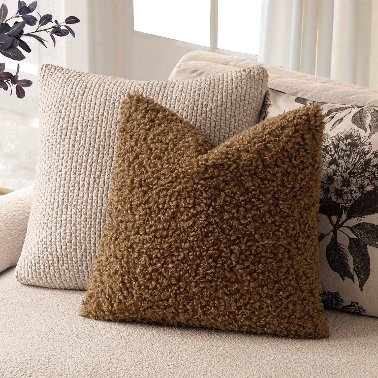 - The shearling pillow cover was designed for a tight curly texture, soft, plush and cozy, offering all the warmth and comfort in winter.