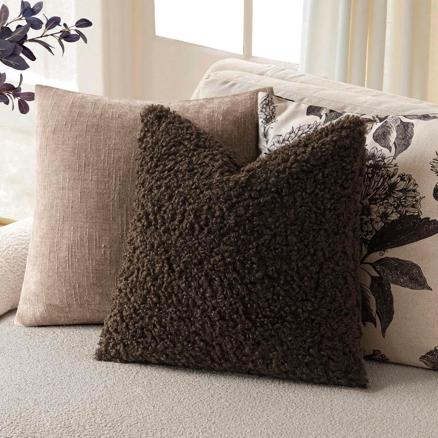 - The shearling pillow cover was designed for a tight curly texture, soft, plush and cozy, offering all the warmth and comfort in winter.