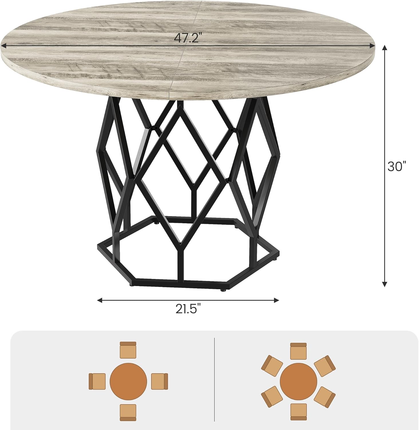 - - Modern Farmhouse Style: Searching for a round kitchen table for your home? This farmhouse round dining table features a rustic wood grain tabletop and a unique diamond-shaped black metal base, seamlessly blending modern elegance into your dining space