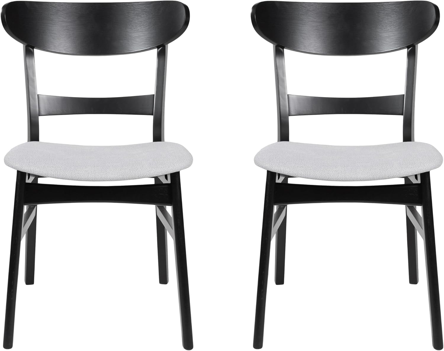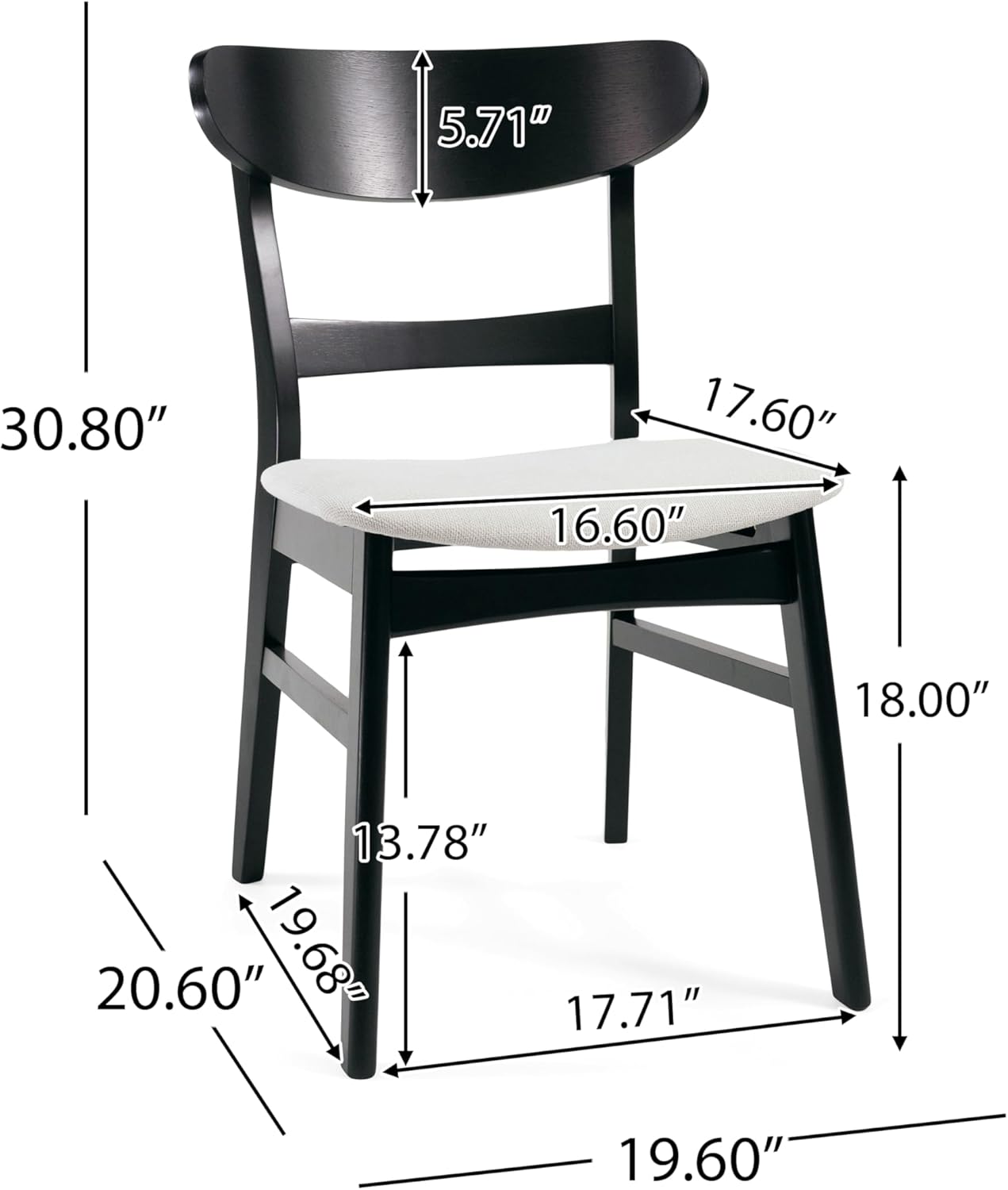 Set of 2 Solid Wood Dining Chairs, Fabric Upholstered Seat Mid-Century Modern Kitchen Furniture for Living Room, Light Beige+Black
