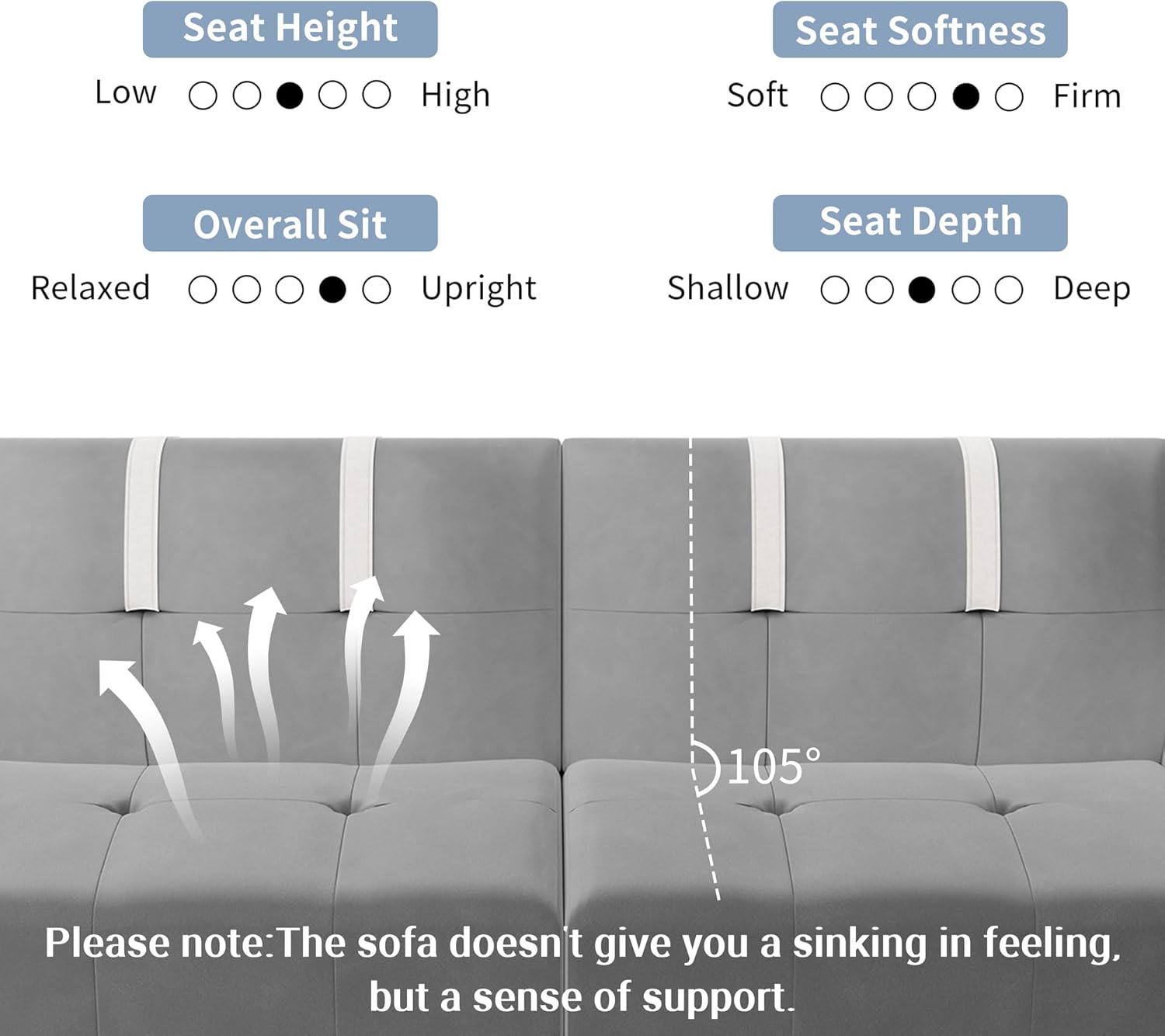 - Comfortable Loveseat Sofa: The sofa is made of modern Velvet fabric with a hardwood frame as the basic structure. The Velvet fabric is comfortable and not easy to pilling, fading. Soft cushions and a reinforced back, eases the rebound, providing strong comfort.