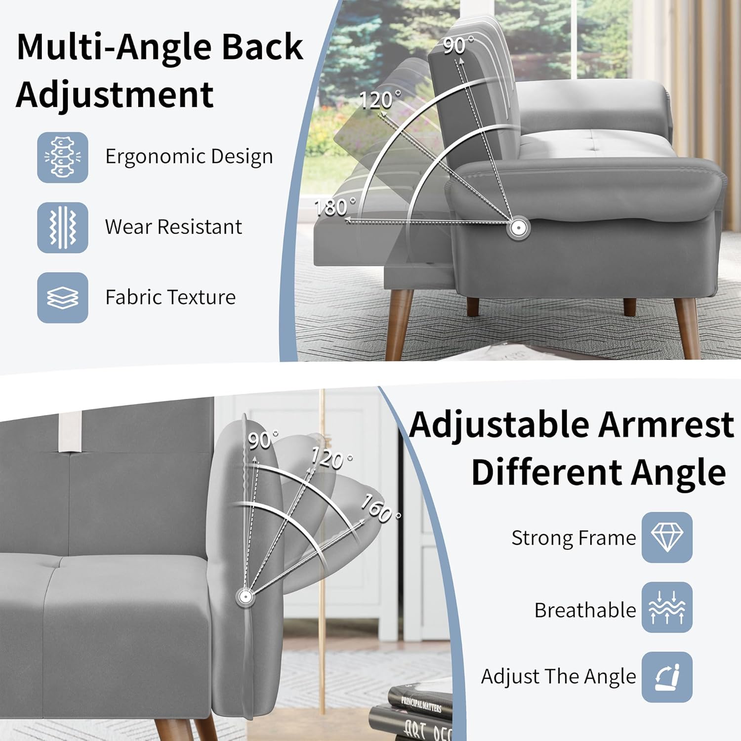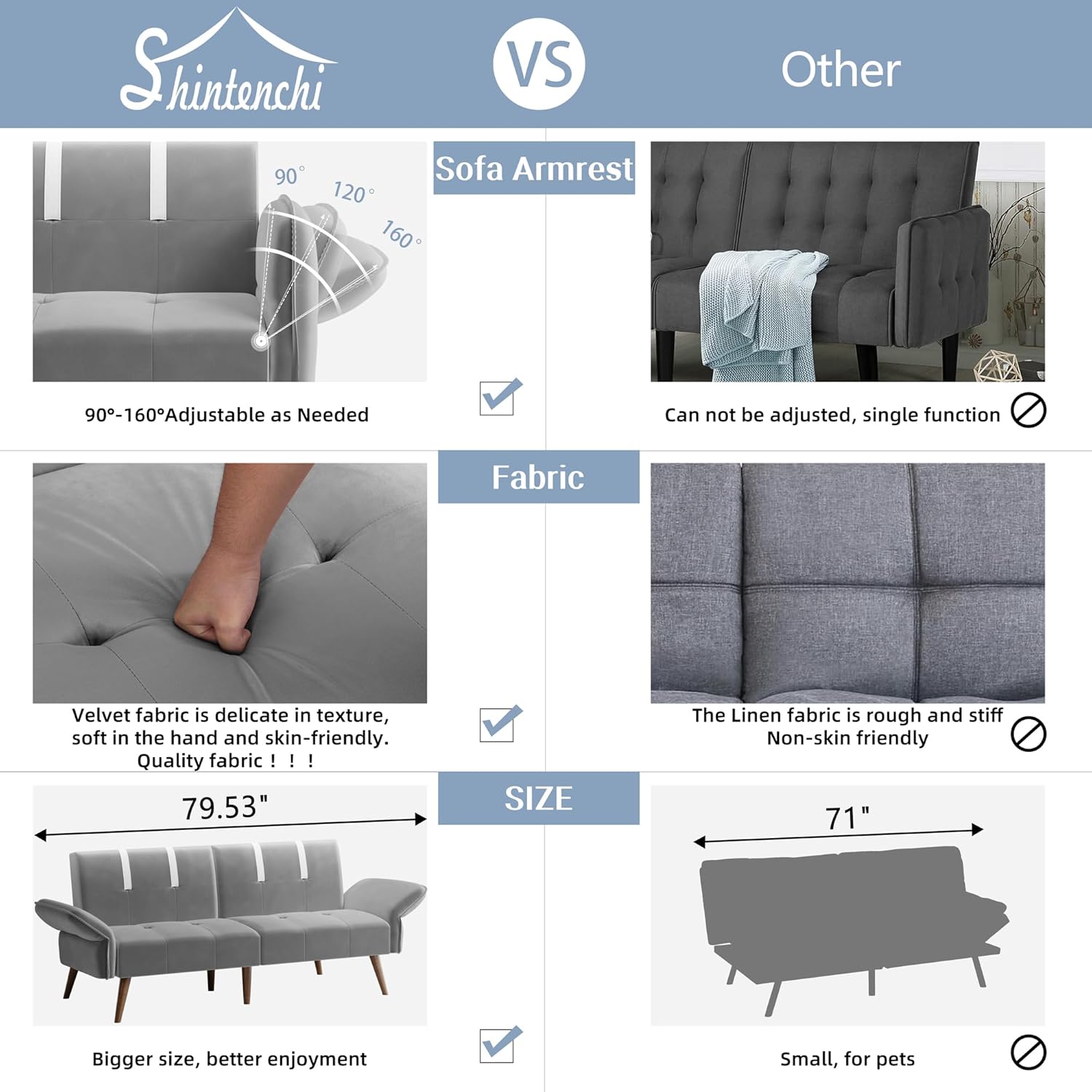 Shintenchi Sleeper Sofa Bed,Velvet Futon Folding Couch Bed with Adjustable Armrest Backrest,Loveseat Sofa Couch for Living Room Apartment Office Small Space